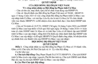 Ban tttl đưa tin: QUYẾT ĐỊNH CỦA HỘI ĐỒNG HỌ PHẠM VIỆT NAM V/v công nhận nhân sự Hội đồng họ Phạm tỉnh Cà Mau.