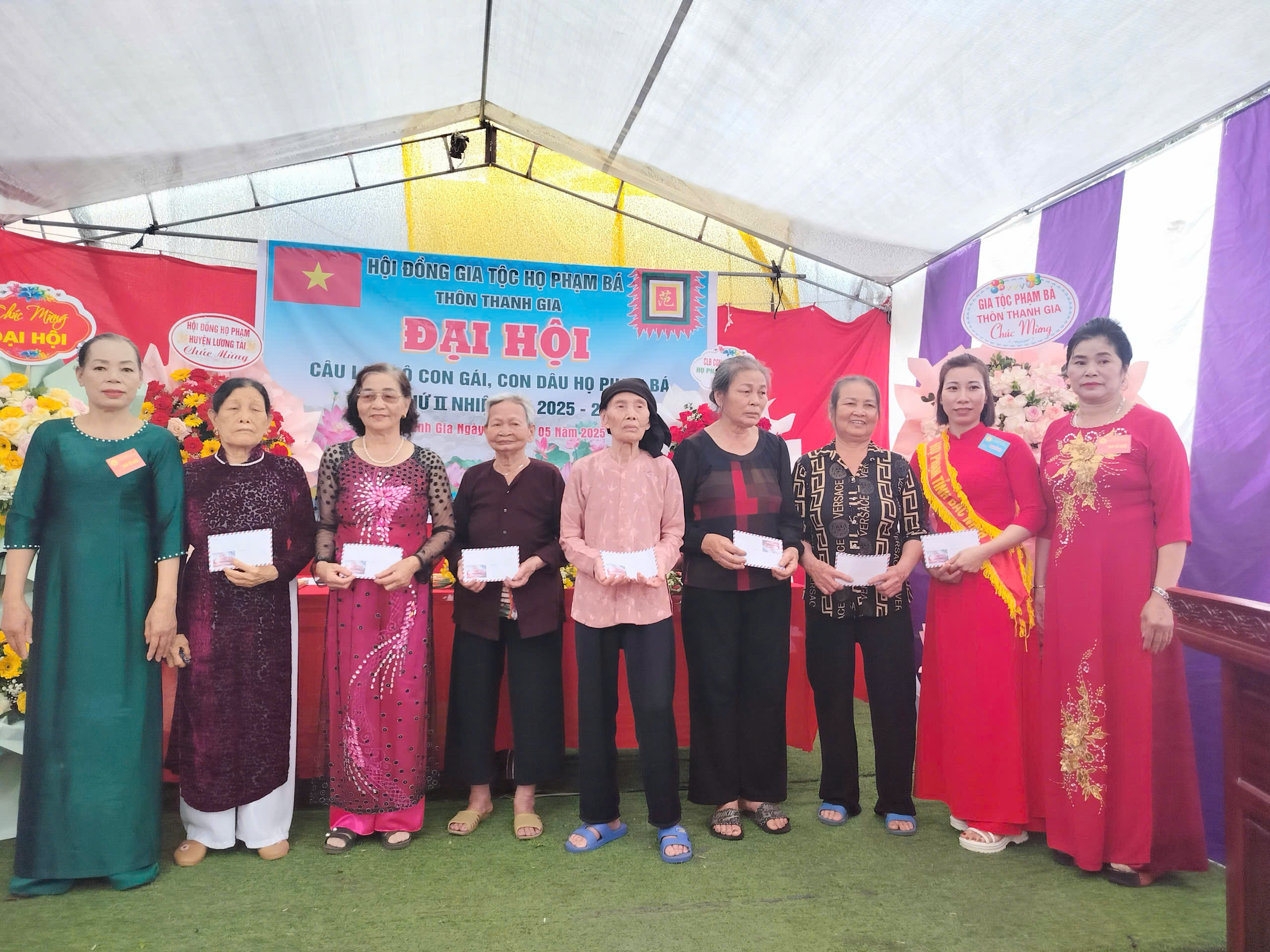 CLB/ GDHP Bá thôn Thanh Gia khen thưởng cho 8 hội viên đã có thành tích xuất sắc. Và trao tặng 27 xuất quà cho các cụ người cao tuổi, gia đình có hoàn cảnh khó khăn, các cháu khuyến tật. Đại hội đã nhất trí bầu ban Chủ Nhiệm CLB/ GDHP Bá hình thức biểu quyết 1 lần. với sự đồng thuận cao đã bầu ra CLB/ GDHP Bá thôn Thanh Gia khóa II nhiệm kỳ “(2025-2030) gồm 13 thành viên, trong đó có 1 Chủ nhiệm, 3 Phó chủ nhiệm và 9 Ủy viên CLB. Xin chúc mừng bà Nguyễn Thị Yến tái đắc cử Chủ nhiệm CLB/ GDHP thôn Thanh Gia, xã Quảng Phú, huyện Lương Tài, tỉnh Bắc Ninh nhiệm kỳ 2025-2030.
