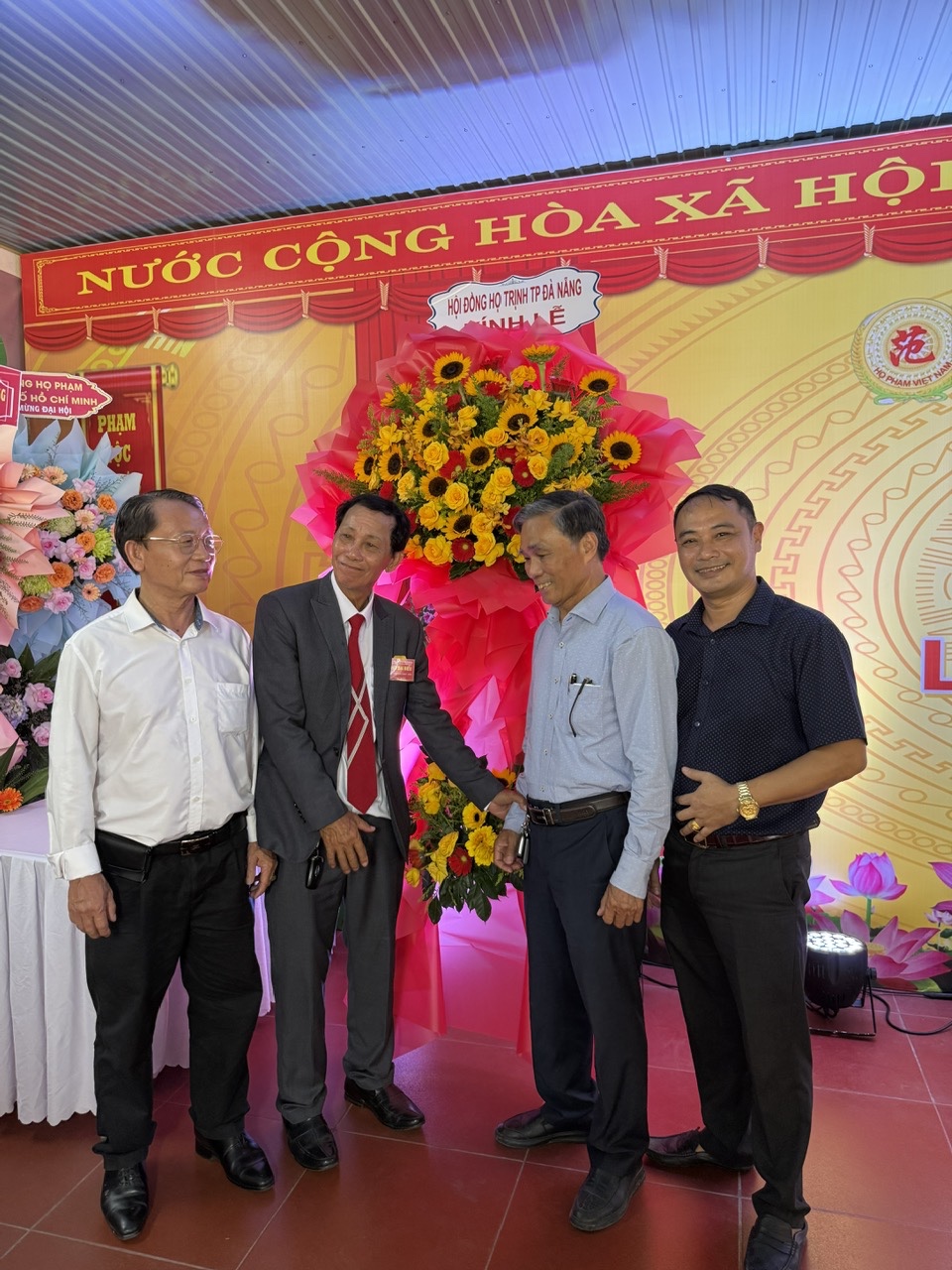 Đại hội rất hoan hỉ được đón nhận những lẳng hoa tươi thắm của Đảng ủy- Hội Đồng ND, UB ND, UBMT TQVN phường Điện Bàn Đông , của các Tộc họ anh em, của Hội Đồng họ Phạm Việt Nam, Hội đồng họ phạm tỉnh Đak Lak không về dự được đã gửi lẳng hoa chúc mừng.