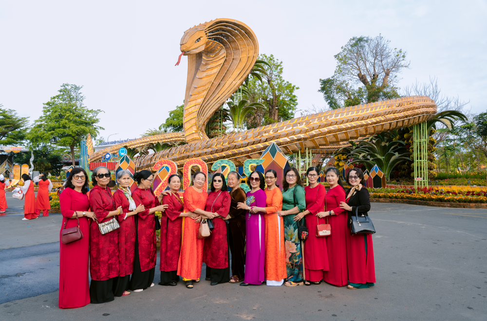 Phần thứ nhất: Từ 7:30 đến 8:30, chụp hình lưu niệm( Công viên Hồ sơn chào mừng xuân Ất tỵ 2025 biểu tượng hoa hậu Rắn).