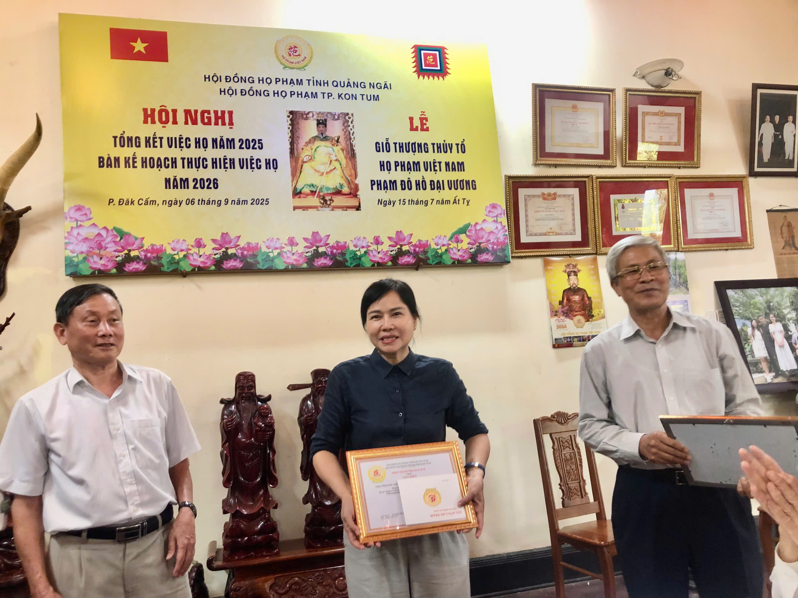 Sáng nay ngày 15-7-2025 âl HĐHP tỉnh KONTOM (cũ) Tổ chức tổng kết công việc Họ Tộc và bàn phương hướng cho nhiệm vụ năm 2026,đến dự hội nghị có ông Phạm Đình Khối PCTHĐ HPVN ,CTHĐHP QUẢNG NGÃI và ông Phạm đình Thu UVHĐHPVN , PCTHĐ HP TỈNH GIA LAI và hơn 30 đại biểu về dụ hội nghị.Sau khi nghe ông Phạm Bá Hoan CTHĐ báo cáo tổng kết việc Họ của HĐHP KONTOM ,ông Phạm Đức Hạnh PCTHĐ thông qua phương hướng hoạt động trong thời gian tới,nhất là xác định tên gọi HĐHP KONTOM thống nhất và làm tờ trình gởi về HĐHP tỉnh Quảng Ngãi quyết định tên gọi chính thức.Hội nghị cũng đã kết nạp thêm được tổng cộng 67 thành viên trong Hội Đồng,trong đó có 3 PCT và 8 UVTT ,Hội nghị thế hiện tinh thần đoàn kết cao,hứa hẹn nhiệm kỳ tới HĐHP KONTOM vương lên mạnh mẽ.Cũng trong dịp này hội nghị khen thưởng cho hai cháu học giỏi cấp tỉnh và cấp Quốc gia.Sau hội nghị HĐHP KONTOM TỔ CHỨC LỄ GIỖ THƯỢNG THỦY TỔ ĐÔ HỒ ĐẠI VƯƠNG PHẠM TU LẦN THỨ 1480 Năm TẠI NHÀ THỜ ANH PHẠM THANH HÀ NƠI THỜ THƯỢNG THỦY TỔ PHẠM TU trong Không khí ấm áp thắm tình đồng tộc