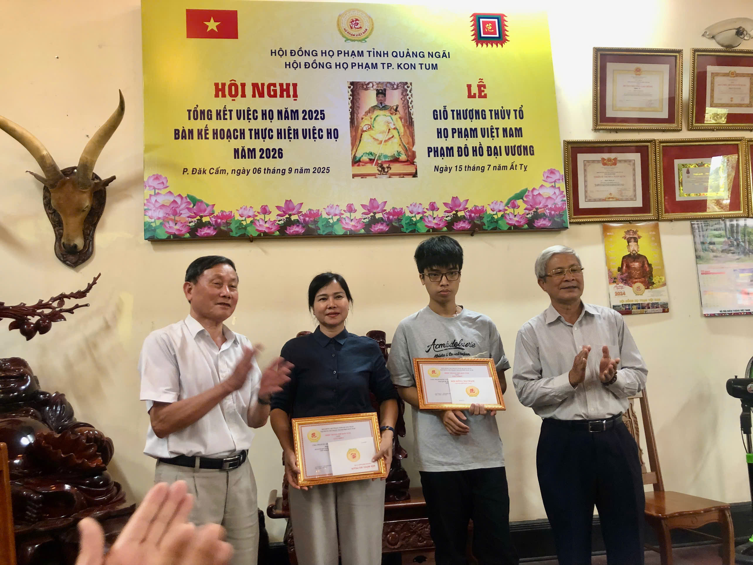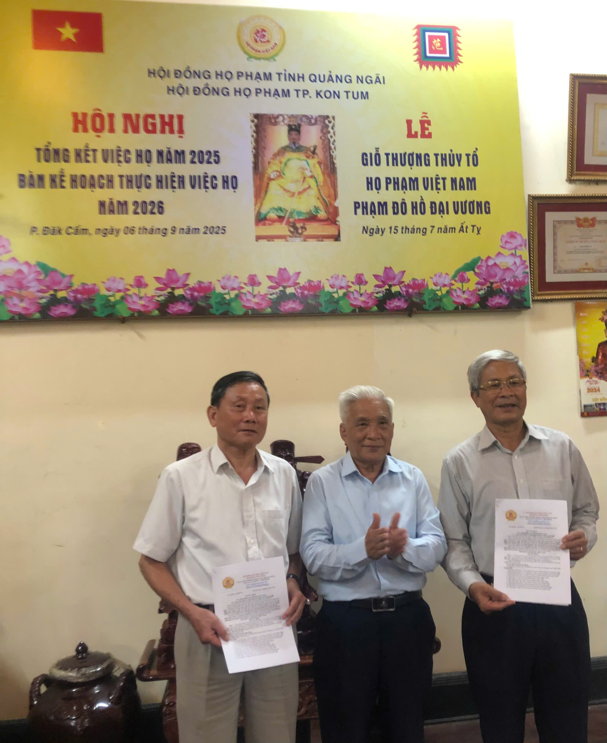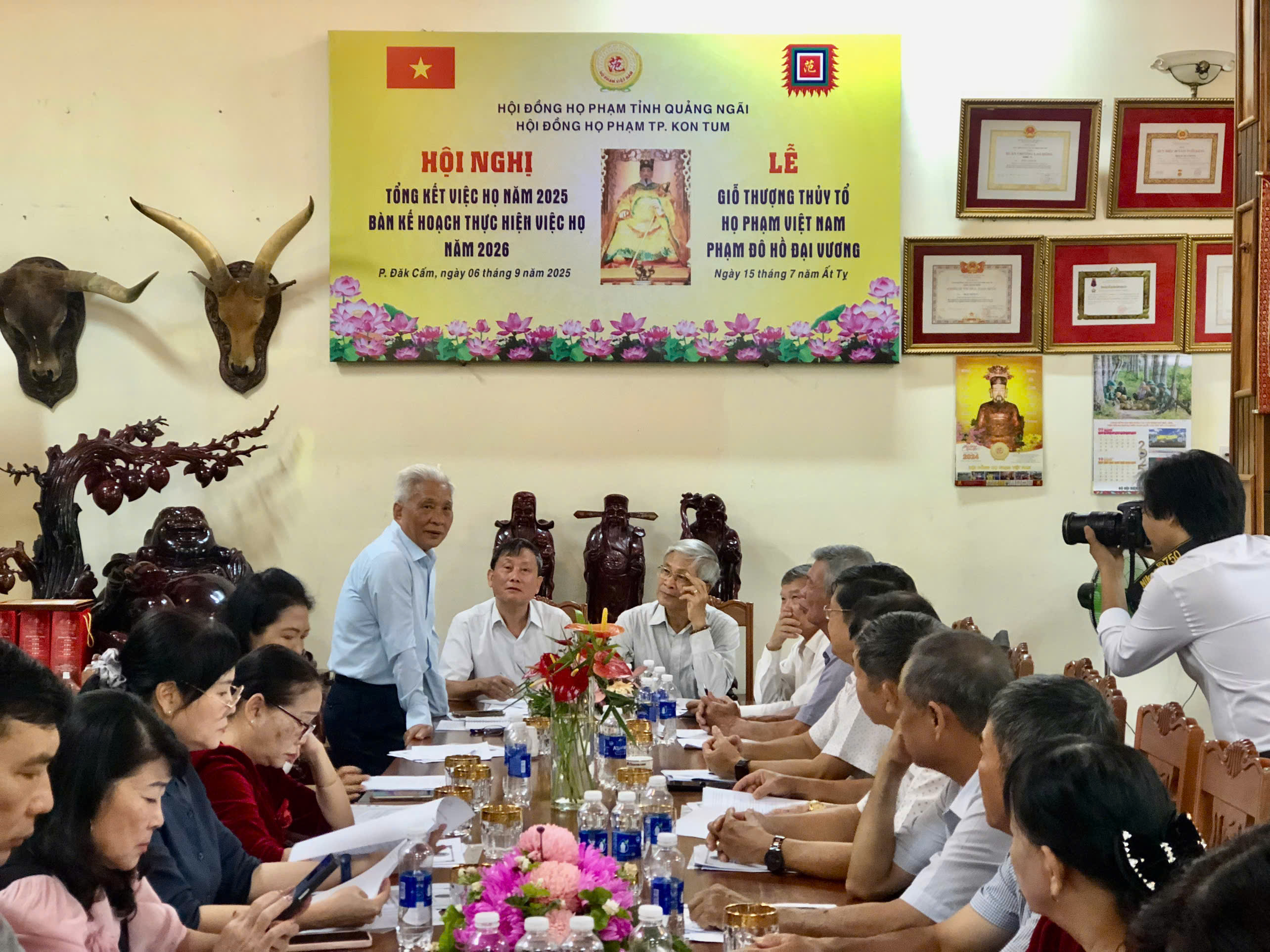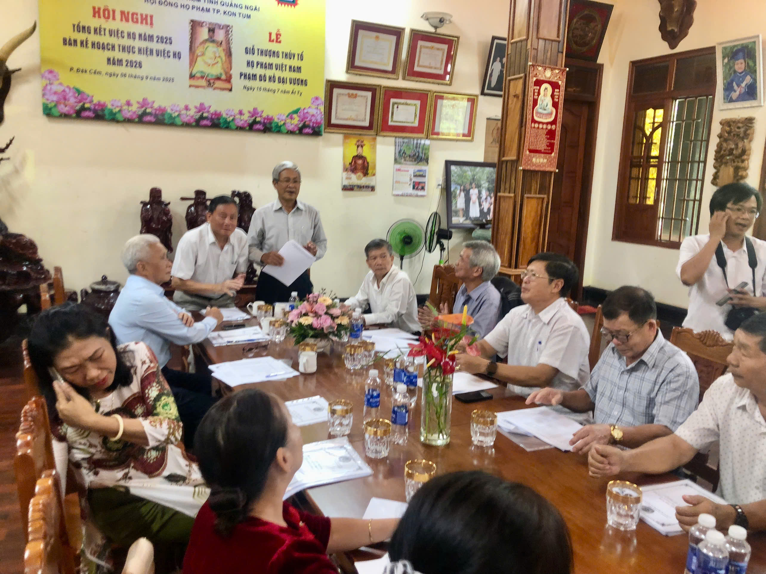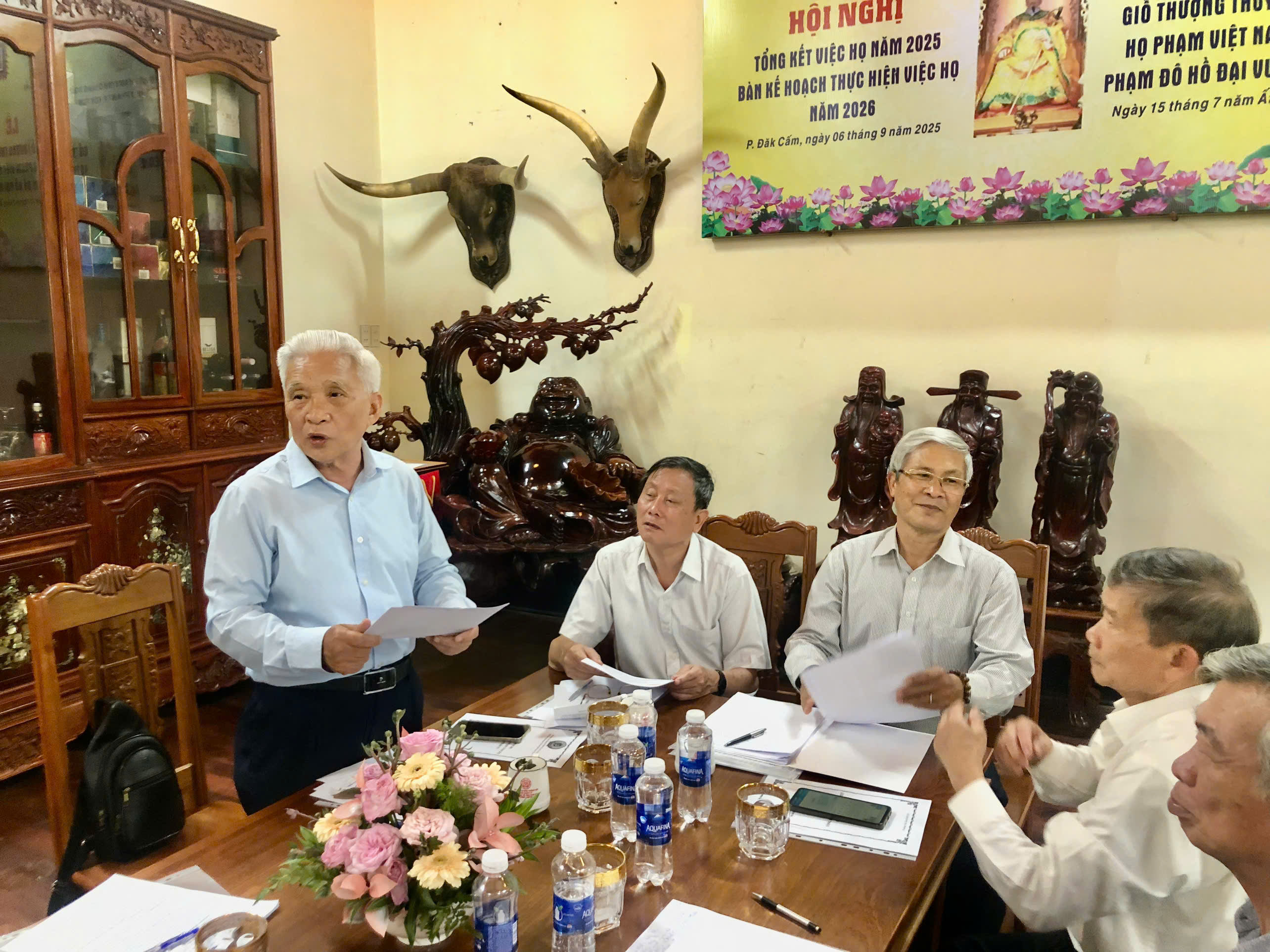 Sáng nay ngày 15-7-2025 âl HĐHP tỉnh KONTOM (cũ) Tổ chức tổng kết công việc Họ Tộc và bàn phương hướng cho nhiệm vụ năm 2026,đến dự hội nghị có ông Phạm Đình Khối PCTHĐ HPVN ,CTHĐHP QUẢNG NGÃI và ông Phạm đình Thu UVHĐHPVN , PCTHĐ HP TỈNH GIA LAI và hơn 30 đại biểu về dụ hội nghị.Sau khi nghe ông Phạm Bá Hoan CTHĐ báo cáo tổng kết việc Họ của HĐHP KONTOM ,ông Phạm Đức Hạnh PCTHĐ thông qua phương hướng hoạt động trong thời gian tới,nhất là xác định tên gọi HĐHP KONTOM thống nhất và làm tờ trình gởi về HĐHP tỉnh Quảng Ngãi quyết định tên gọi chính thức.Hội nghị cũng đã kết nạp thêm được tổng cộng 67 thành viên trong Hội Đồng,trong đó có 3 PCT và 8 UVTT ,Hội nghị thế hiện tinh thần đoàn kết cao,hứa hẹn nhiệm kỳ tới HĐHP KONTOM vương lên mạnh mẽ.Cũng trong dịp này hội nghị khen thưởng cho hai cháu học giỏi cấp tỉnh và cấp Quốc gia.Sau hội nghị HĐHP KONTOM TỔ CHỨC LỄ GIỖ THƯỢNG THỦY TỔ ĐÔ HỒ ĐẠI VƯƠNG PHẠM TU LẦN THỨ 1480 Năm TẠI NHÀ THỜ ANH PHẠM THANH HÀ NƠI THỜ THƯỢNG THỦY TỔ PHẠM TU trong Không khí ấm áp thắm tình đồng tộc