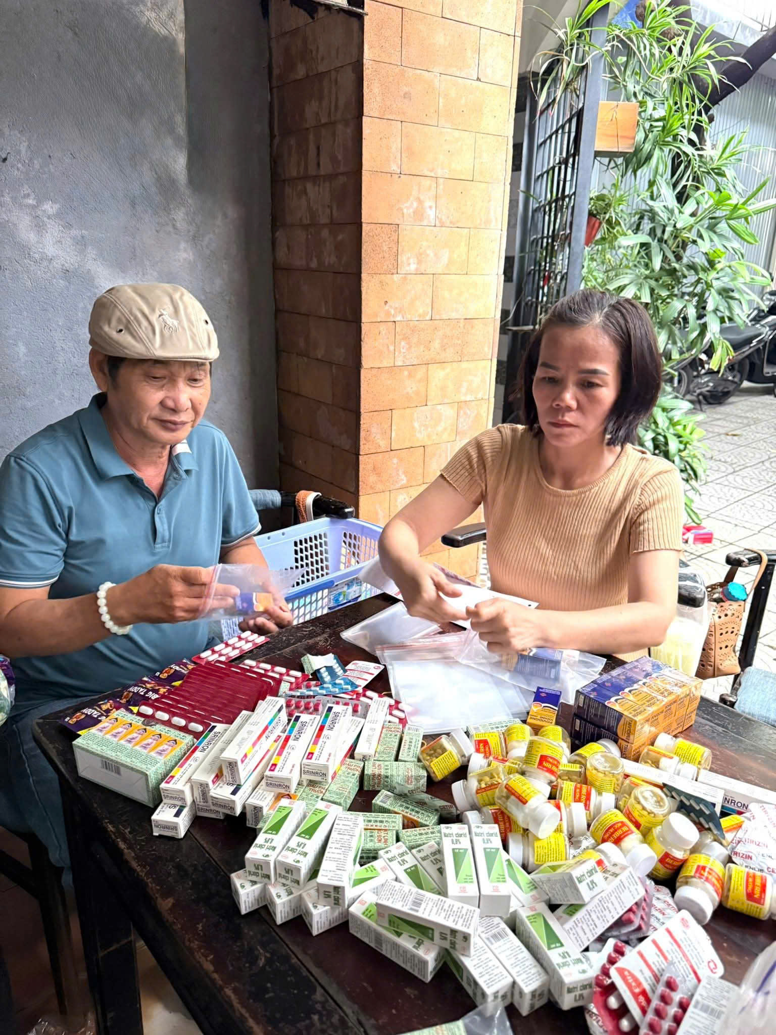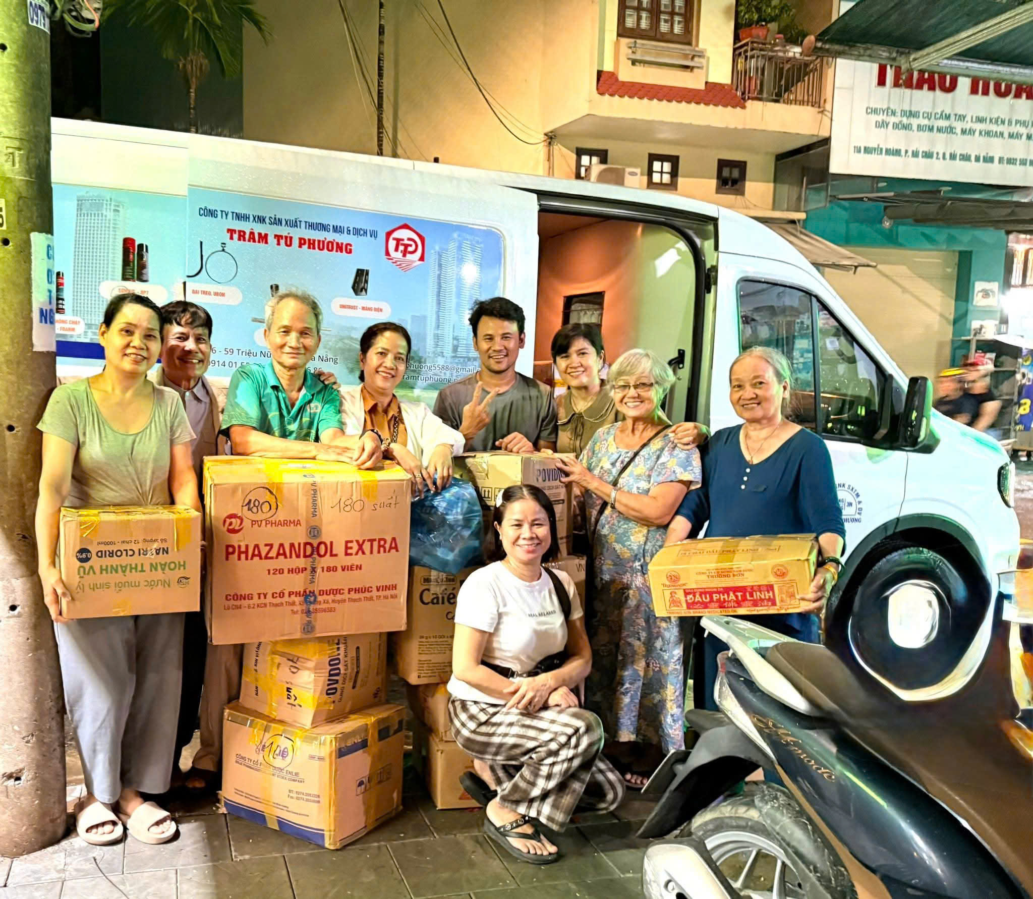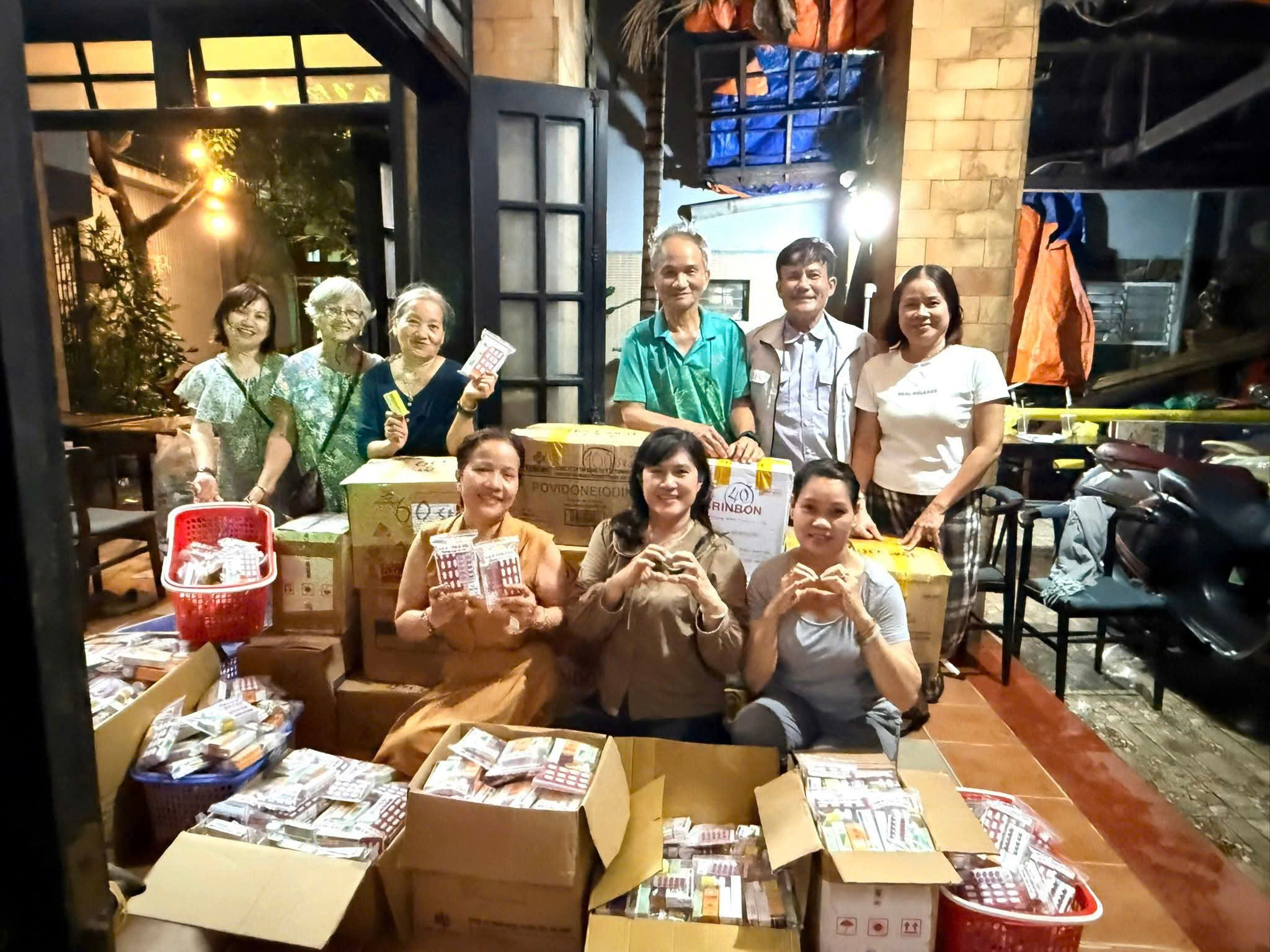 16 h ngày 10/10/2025 , Thường trực HĐHP TP Đà Nẳng, Phó ban Tri ân thiện nguyện họ Phạm TP đà Nẳng Phạm Châu Tuấn phối hợp với nhóm thiện nguyện của anh Phạm Văn Phú và Thu Trang tiến hành đóng 1400 gói thuốc bao gồm : cảm sốt, ho, provodime, bôi ngứa , nhỏ mắt, dầu, thuốc đau bụng , thuốc sát trùng và những vật dụng cần thiết khác để hổ trợ cho bà con đang phải đối mặt với trận lũ lụt kinh hoàng ở các tỉnh miền Bắc .