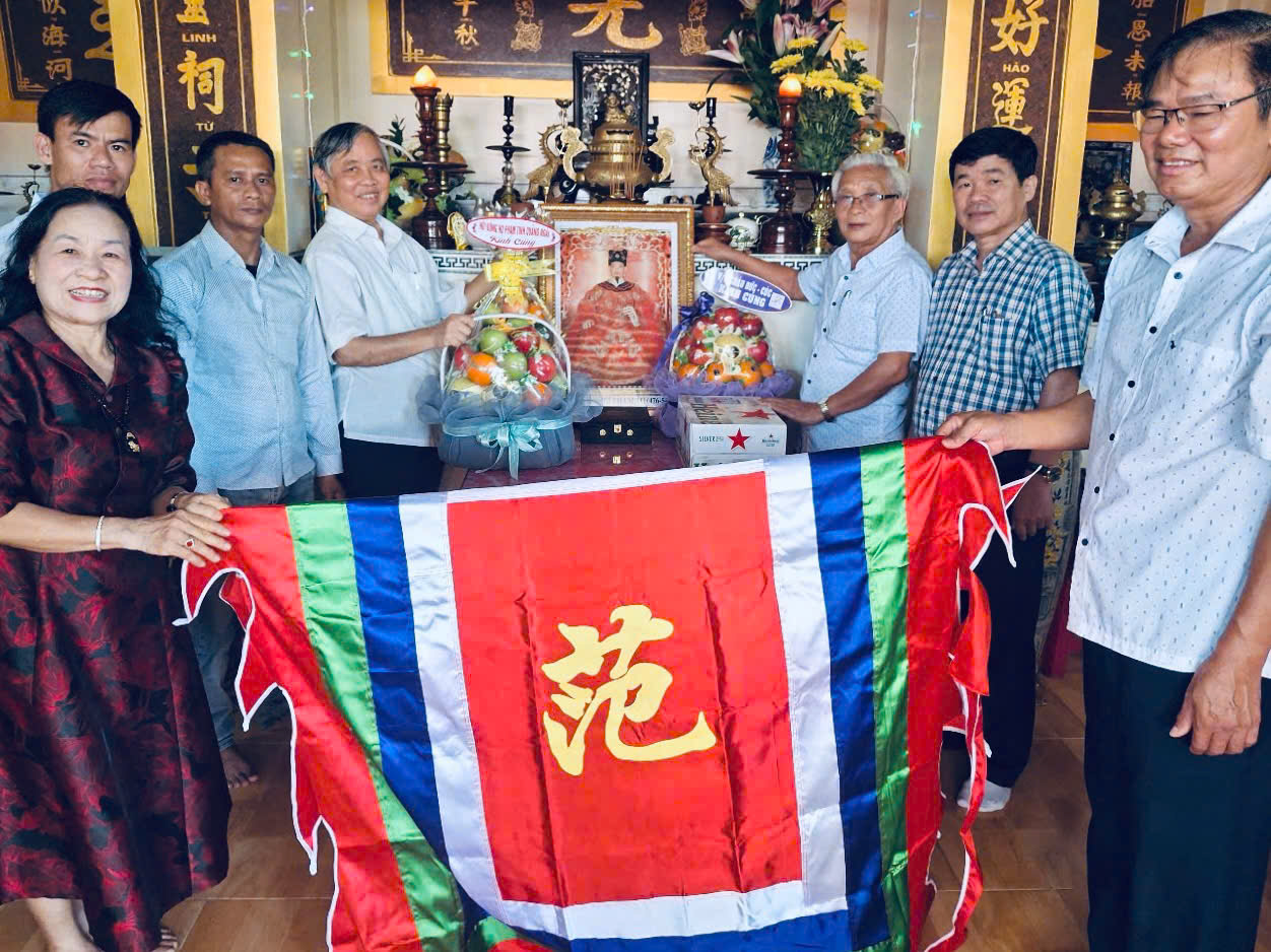 Sáng ngày 21/5/2025, nhằm ngày 24/4 năm Ất Tỵ, tại thôn Kỳ Tân, xã Thắng Lợi, huyện Mộ Đức, tộc họ Phạm Văn tổ chức lễ Khánh thành nhà thờ tộc họ Phạm Văn và cho ra mắt ấn phẩm “Gia phả dòng họ Phạm Văn-thôn Kỳ Tân, xã Thắng Lợi”. Dự lễ Khánh thành có đông đủ con cháu tộc họ Phạm Văn (thôn Kỳ Tân) hiện đang sinh sống ở các vùng miền trong cả nước, bà con nội ngoại trong dòng tộc; bà con các tộc họ Lê, Nguyễn, Võ, Trần trong huyện Mộ Đức; ông Phạm Đình Khối, chủ tịch HĐHP tỉnh Quảng Ngãi và các ông trong TT HĐHP tỉnh, huyện Mộ Đức đã đến dự. Nhân dịp này, TT HĐHP tỉnh Quảng Ngãi đã trao cho Ban quản lý nhà thờ tộc họ Phạm Văn (thôn Kỳ Tân) lá cờ của Họ Phạm Việt Nam và chân dung Thượng Thủy tổ Đô hồ Đại vương Phạm Tu. Thay mặt Ban quản lý nhà thờ tộc họ Phạm Văn, bà Phạm Thị Kim Cúc đã đón nhận tình cảm của TT HĐHP tỉnh và bày tỏ tình cảm của dòng họ Phạm Văn với tất cả các Quí khách tham dự buổi lễ Khánh thành nhà thờ tộc họ Phạm Văn./.