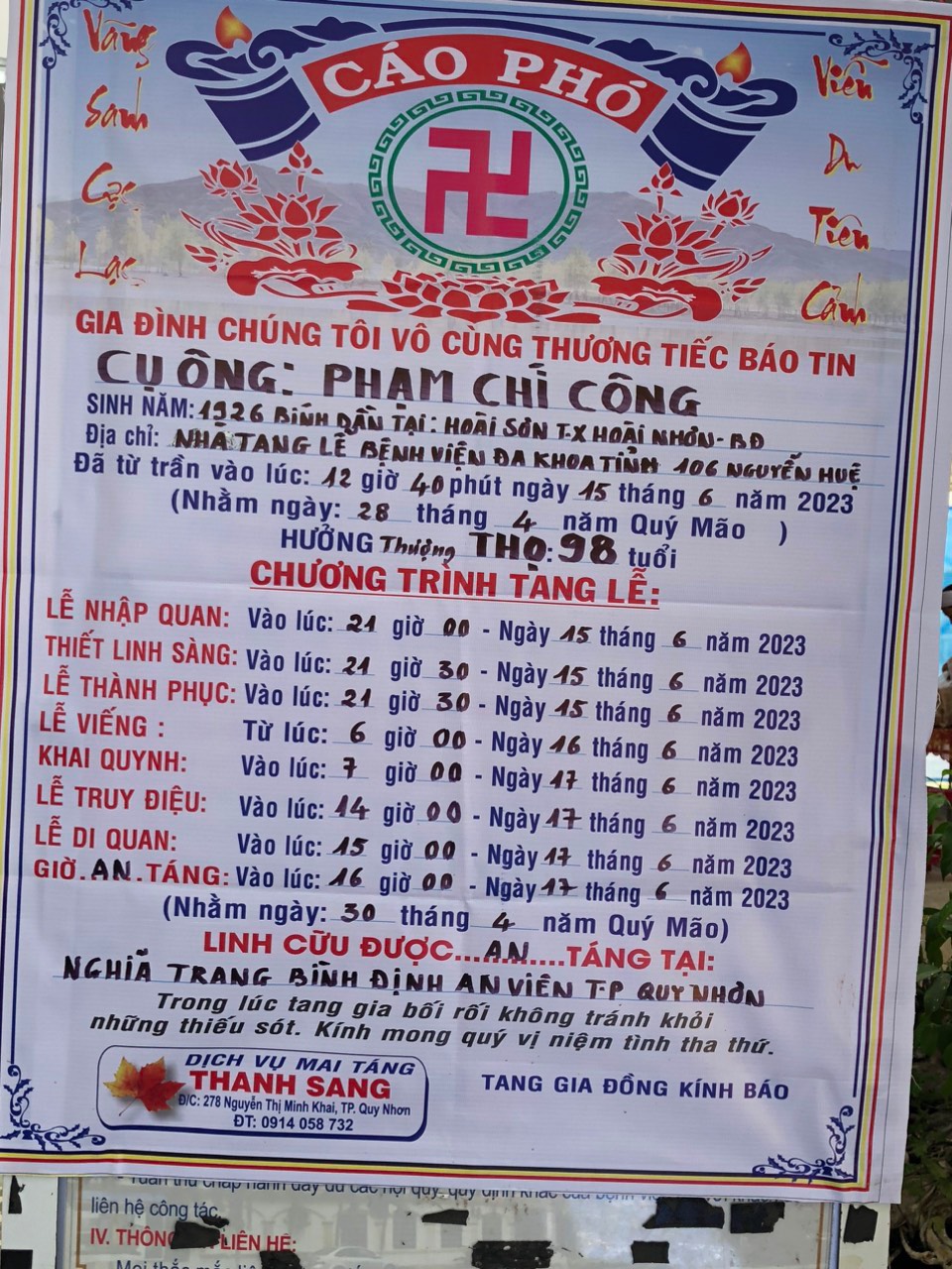 Cụ Phạm Chí Công 75 tuổi Đảng, hưởng thọ 98 tuổi, nguyên là lãnh đạo tỉnh Bình Định thời kỳ trước 1975 và sau 1975 cho đến năm 1991 nghỉ hưu. Cụ được tặng thưởng Huân chương Độc lập hạng 2, nhiều Huân chương kháng chiến và Huân chương chiến công. có công đầu trong xây dựng Ban liên lạc nay là HĐHP tỉnh Bình Định.