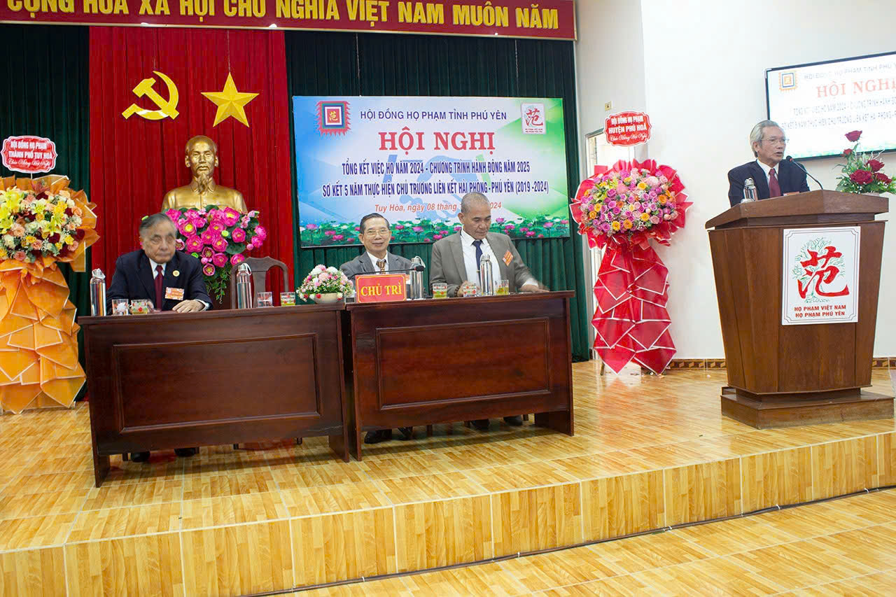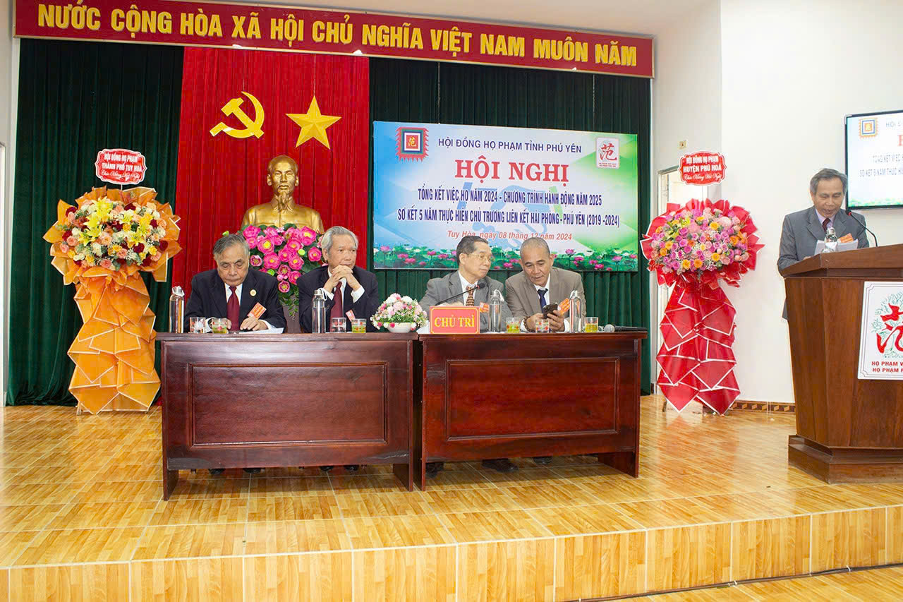 Sáng ngày 8 tháng 12 năm 2024, tại TP Tuy Hòa, tỉnh Phú Yên, HĐHP tỉnh Phú Yên đã đăng cai tổ chức hội nghị Sơ kết 5 năm chương trình kết nghĩa. Tới dự có ông Phạm Vũ Câu, Chủ tịch HĐHPVN; Ông Phạm Văn Chi, PCT HĐHPVN,CTHĐHP tỉnh Phú Yên; Ông Phạm Đức Hữu, UVTT HĐHPVN, PCT TT HĐHP tỉnh Phú Yên; Bà Phạm Thị Tương Lai, PCT HĐ, Chủ nhiệm CLB CGCD họ Phạm tỉnh Phú Yên, cùng đông đảo các thành viên TT HHP tỉnh Phú Yên. Đại diện HĐHP TPHP Có TS Phạm Tiến Dũng, UVTT HĐHPVN, Chủ tịch HĐHP TPHP; Ông Phạm Văn Mạnh, PCT kiêm Tổng thư ký HĐHP TPHP; Ông Phạm Bùi Trung, PCT HĐHP TPHP, CN CLB DNHP TPHP; Ông Phạm Quang Thuấn, PCT HĐHP TPHP, Chủ tịch HĐHP huyện Vĩnh Bảo; Ông Phạm Văn Diệp, UVTT HĐHP TPHP; Bà Phạm Trần Bảo Xuân, P chủ tịch CLB CGCD HP TPHP; Bà Phạm Thị Thúy, UVHĐ HĐHP TPHP –Chủ nhiệm lâm thời CLB CGCD quận Lê chân, Hải Phòng.