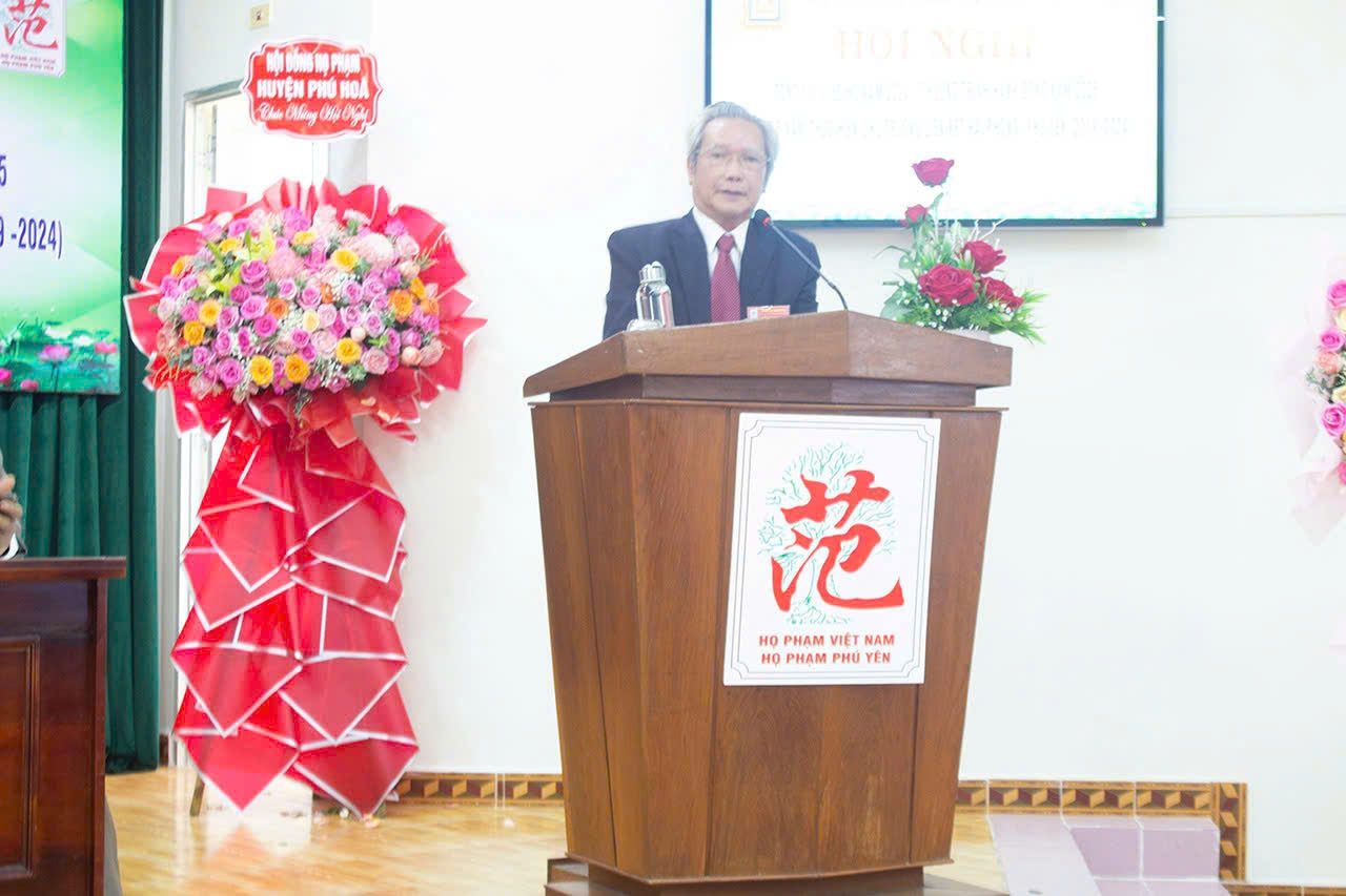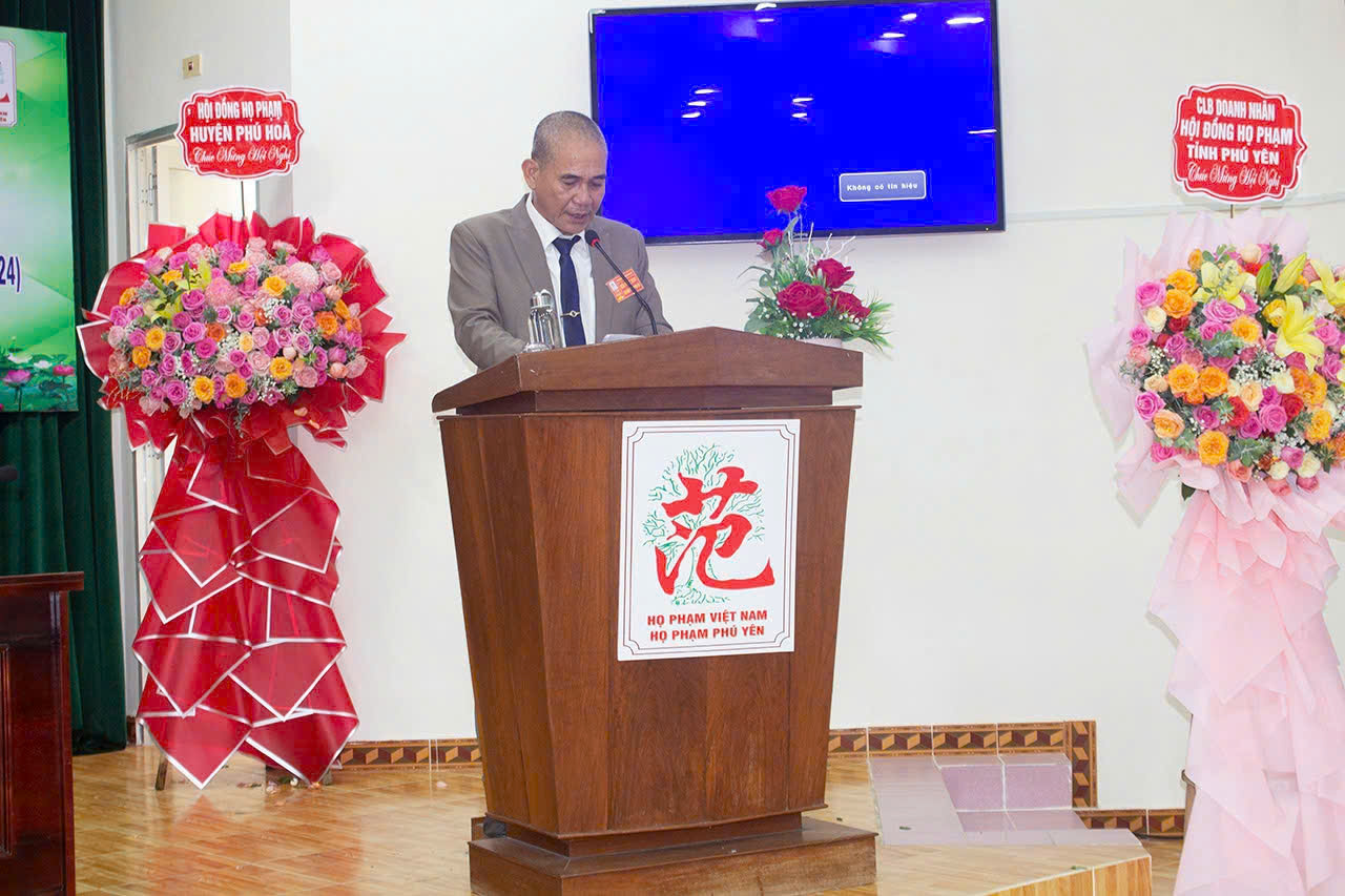 TS Phạm Vũ Câu phát biểu ghi nhận những kết quả đáng khích lệ và tích cực trong 5 năm hoạt động thực hiện chủ trương của HĐHP VN về chương trình ký kết kết nghĩa hợp tác giao lưu làm việc họ giữa các đơn vị trong hội đồng và gợi mở một số vấn đề quan tâm cho sự phát triển hoạt động trong các năm tiếp theo. Hội đồng Họ Phạm Việt Nam chủ trương và động viên các địa phương liên kết, kết nối với nhau để thực hiện mục tiêu chung là thúc đẩy phát triển và mở rộng tổ chức hoạt động việc họ.