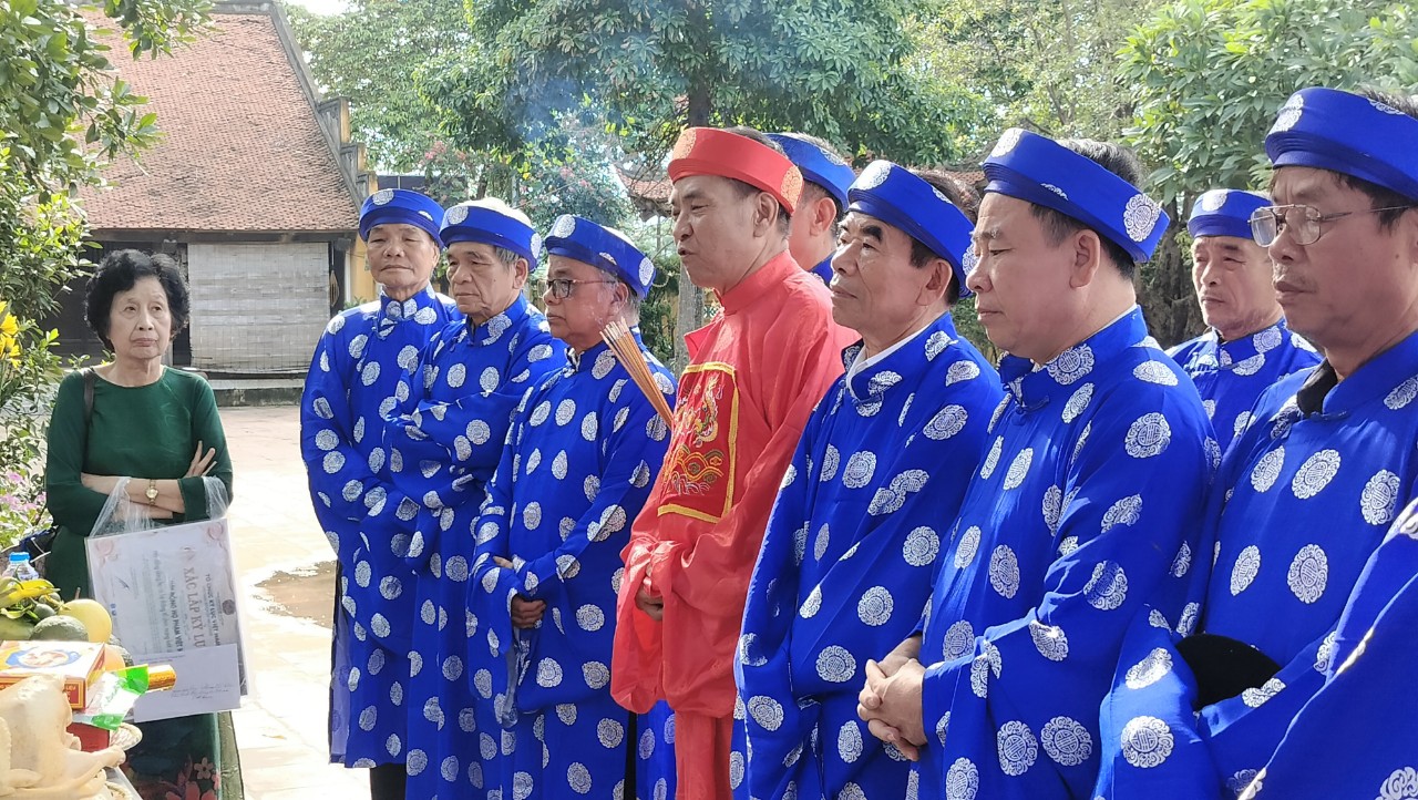 Sau lễ dâng hương, bà Phạm Thị Lệ Trường đã trao tặng Đoàn cờ họ, Bằng xác nhận Kỷ Lục Guinness Họ Phạm Việt Nam và quyển Cổ Miếu cho HĐHP tỉnh Vĩnh Phúc./.