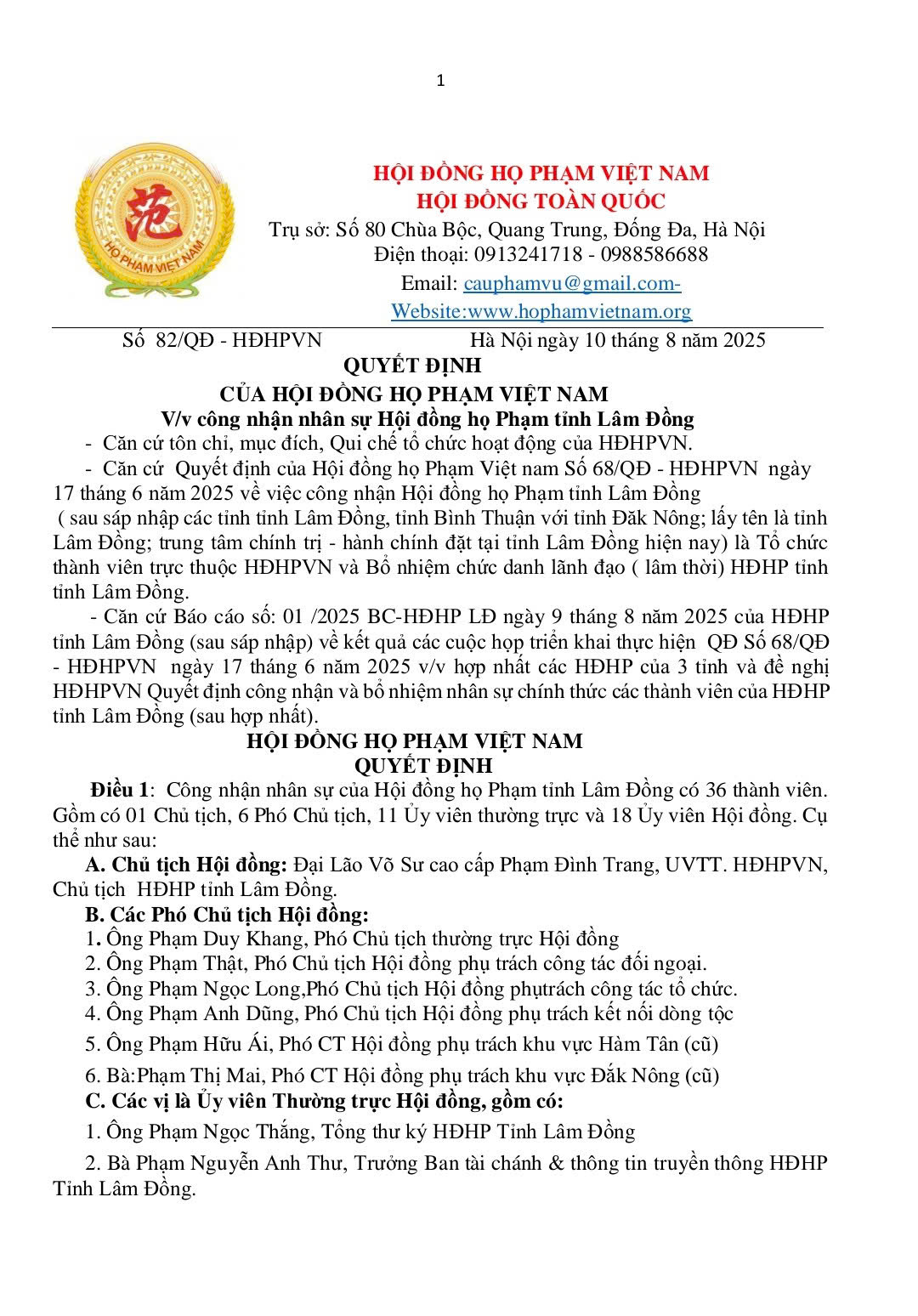 Đăng nhập Đăng nhập tài khoản Tài khoản mật khẩu của bạn Forgot your password? Get help Khôi phục mật khẩu Khởi tạo mật khẩu email của bạn Mật khẩu đã được gửi vào email của bạn. Trang chủThông báoQUYẾT ĐỊNH CỦA HỘI ĐỒNG HỌ PHẠM VIỆT NAM CÔNG NHẬN... Thông báo QUYẾT ĐỊNH CỦA HỘI ĐỒNG HỌ PHẠM VIỆT NAM CÔNG NHẬN NHÂN SỰ HỘI ĐỒNG HỌ PHẠM TỈNH LÂM ĐỒNG. By hoanpham 12/08/2025 0 35 Share FacebookTwitterPinterestWhatsApp Ban tttl đưa tin: QUYẾT ĐỊNH CỦA HỘI ĐỒNG HỌ PHẠM VIỆT NAM V/v công nhận nhân sự Hội đồng họ Phạm tỉnh Lâm Đồng. Share FacebookTwitterPinterestWhatsApp Bài trướcTHÔNG BÁO TIN BUỒN – Chủ tịch HĐ Họ Phạm Hà Tĩnh – Phạm Minh Khoa – từ trầnBài tiếp theoĐại hội thành lập Hội đồng họ phạm Xã Gò Nổi – Đà Nẵng nhiệm kỳ (2025 – 2030) và ra mắt Câu lạc bộ con gái con dâu họ Phạm hoanpham RELATED ARTICLES HOẠT ĐỘNG HỌP HỘI NGHỊ TỔNG KẾT HOẠT ĐỘNG NĂM 2025 24/01/2026 Thông báo THÔNG BÁO TIN BUỒN : CỤ PHẠM CẦU – nguyên Phó Chủ tịch Thường trực Hội đồng toàn quốc Họ Phạm Việt Nam khóa... 27/12/2025 Thông báo QUYẾT ĐỊNH CỦA HỘI ĐỒNG HỌ PHẠM VIỆT NAM V/v công nhận nhân sự Hội đồng họ Phạm tỉnh Khánh Hòa 13/10/2025 BÌNH LUẬN Hủy trả lờiđăng nhập để lại một bình luận Most Popular HỘI NGHỊ TỔNG KẾT 2025 VÀ KỶ NIỆM NGÀY QUỐC TẾ PHỤ NỮ 8/3 CỦA CLB CON GÁI CON DÂU HỌ PHẠM HẢI PHÒNG 06/03/2026 Hội Nghị Đầu xuân Bính Ngọ 2026 HĐ Họ Phạm Thành Phố Hải Phòng 02/03/2026 LỄ DÂNG HƯƠNG VÀ LỄ KỶ NIỆM 120 NGÀY SINH BÁC PHẠM VĂN ĐỒNG TẠI QUÊ HƯƠNG XÃ MỘ ĐỨC TỈNH QUẢNG NGÃI 02/03/2026 THÔNG TIN VỀ HOẠT ĐỘNG CỦA HĐHP HÀ NỘI NHỮNG NGÀY ĐẦU XUÂN 2026 02/03/2026 Xem thêm Recent Comments Phạm Thanh Hùng on TIN QNĐN: THÀNH LẬP CLB DOANH NHÂN HỌ PHẠM QNĐN Phamminhgiang on TIN SỐT DẺO Phamminhgiang on Văn kiện Đại hội VII: BÁO CÁO CỦA HỘI ĐỒNG TOÀN QUỐC TẠI ĐẠI HỘI NHIỆM KỲ VII HỘI ĐỒNG HỌ PHẠM VIỆT NAM Phamminhgiang on ĐẠI HỘI NHIỆM KỲ VII HỘI ĐỒNG HỌ PHẠM VN ĐÃ THÀNH CÔNG TỐT ĐẸP Phamminhgiang on Phamminhgiang on Phamminhgiang on Phamminhgiang on Phamminhgiang on