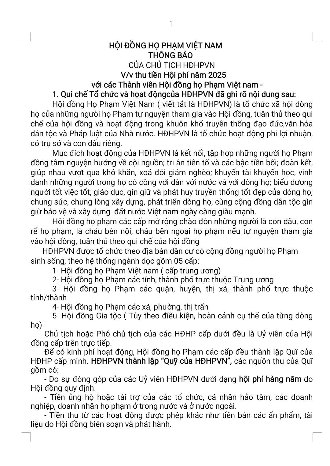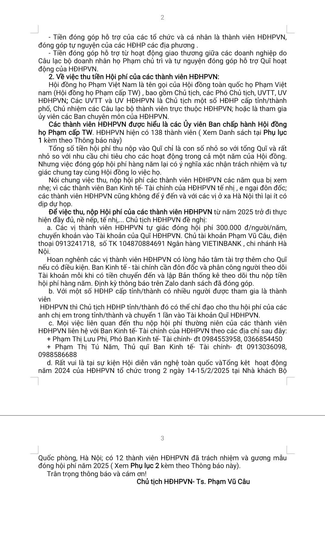 THÔNG BÁO CỦA CHỦ TỊCH HĐHPVN V/v Thu tiền Hội phí năm 2025