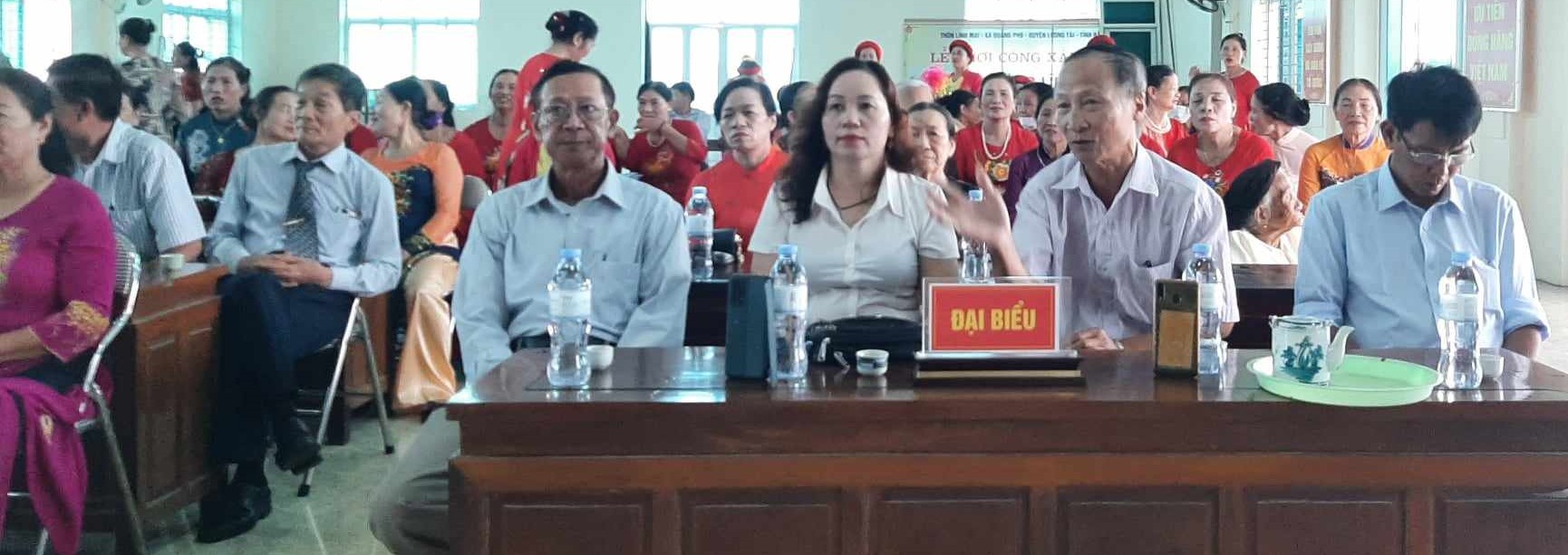 Đại biểu chính quyền địa phương về dự có đại diện cấp ủy, chính quyền địa phương, trưởng ban Công tác Mặt trận và trưởng thôn Lĩnh Mai, do ông Hoàng Văn Cần-Trưởng thôn, làm trưởng đoàn; các cụ ông, cụ bà bậc cao niên, Ban khánh tiết của dòng họ Phạm Văn thôn Lĩnh Mai.