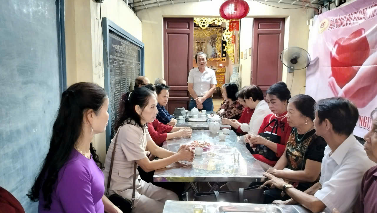 Thay mặt các PCN CLB GDHPVN, các bà Phạm Lưu Phi, Phạm Thị Sen, Phạm Mai Dựng đã trao quà sinh nhật cho các bà Phạm Thị Thơm, Chủ nhiệm; Phạm Thị Lành, PCN, và Phạm Thị Mận, CLB GDHP huyện Đông Anh