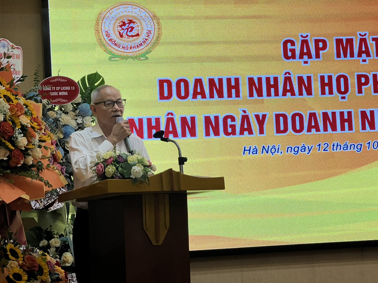 Sau các tiết mục ca nhạc đặc sắc là phần Tuyên bố lý do, giới thiệu đại biểu của bà Phạm Mai Dựng. Bà đã ôn lại lịch sử ra đời ngày Doanh nhân Việt nam cách đây 78 năm (13/101945 – 13/10/2023) và vai trò to lớn của doanh nhân trong sự nghiệp xây dựng và bảo vệ tổ quốc. Sau đó, các Đại biểu cũng được nghe ông Phạm Thanh Hùng, Chủ tịch Hội đồng họ Phạm TP Hà Nội phát biểu chúc mừng các Doanh nhân Hà Nội nhân 78 năm ngày Doanh nhân Việt nam. Ông nói: Mục đích của buổi gặp mặt nhằm tri ân Doanh nhân nói chung và tri ân Doanh nhân họ Phạm sinh sống tại hà Nội và những người bạn nói riêng. Ông mong muốn lực lượng Doanh nhân tuy chỉ chiếm 30% lực lượng lao động Xã hội, nhưng làm ra 60% GDP cho đất nước. lực lượng không chỉ được Bác Hồ Lúc đương thời quan tâm, mà ngày nay được Đảng và nhà nước hết sức chú trọng. Ông cũng tóm tắt sự hình thành Hội đồng họ Phạm Hà Nội, với vinh dự tự hào là tiền thân của HĐHP Việt Nam. Năm 2009 HĐHPHN mới được củng cố hoàn thiện và chính thức đi vào hoạt động. Ông cũng nêu sự cần thiết phải thành lập Câu lạc bộ Doanh nhân họ phạm Hà nội và những người bạn. Ông kêu gọi các DNHP HN và những người bạn hãy ủng hộ HĐHPHN sớm tổ chức Đại hội và bầu được Ban Chủ nhiệm của CLB trong thời gian tới.