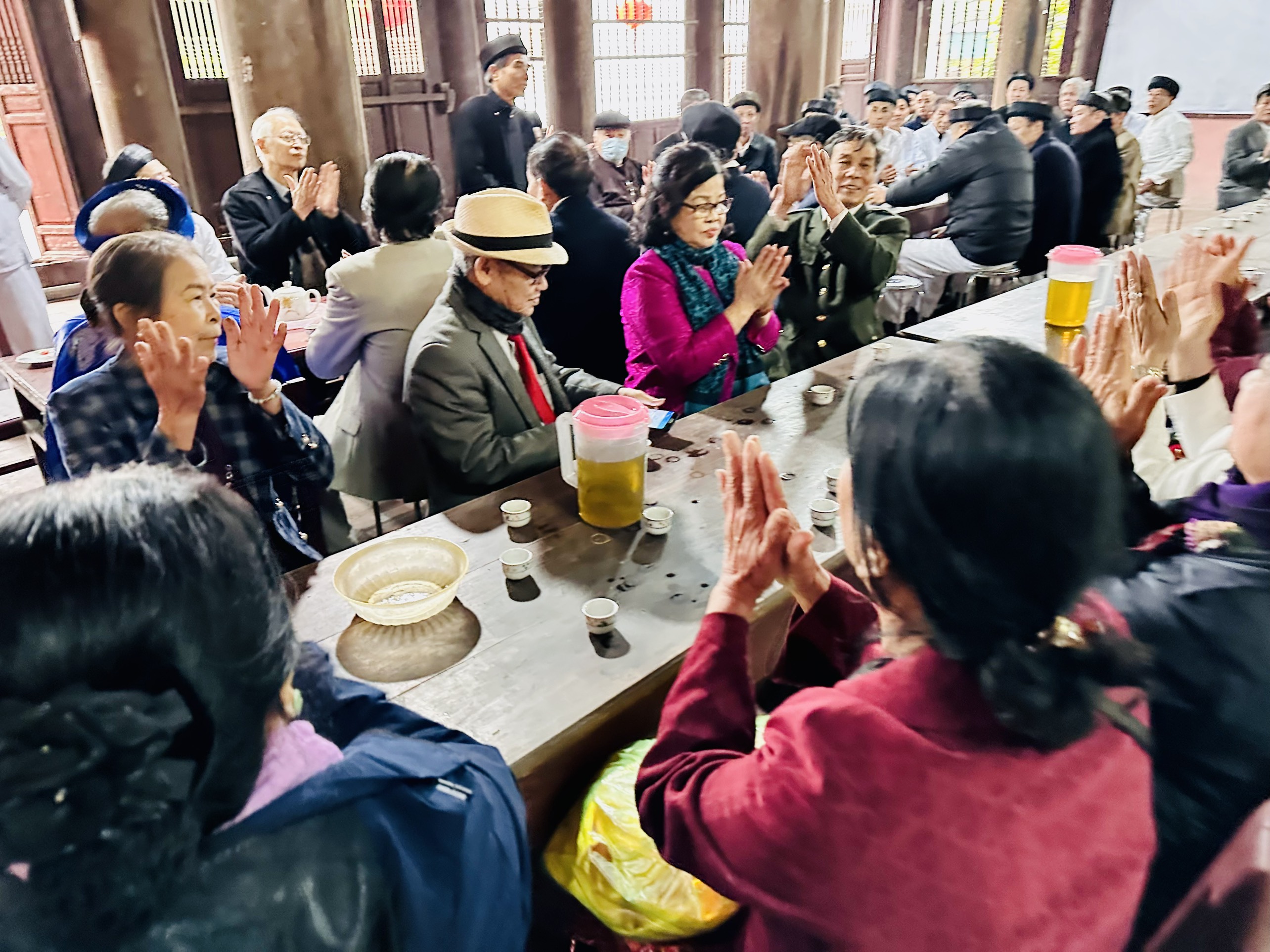 Sau lễ dâng hương, đại diện hội Người cao tuổi, cụ Nguyễn Văn Hiển, đã trân trọng mời đoàn về đình làng cùng các cụ thụ lộc./. Theo tin PHẠM MAI DỰNG