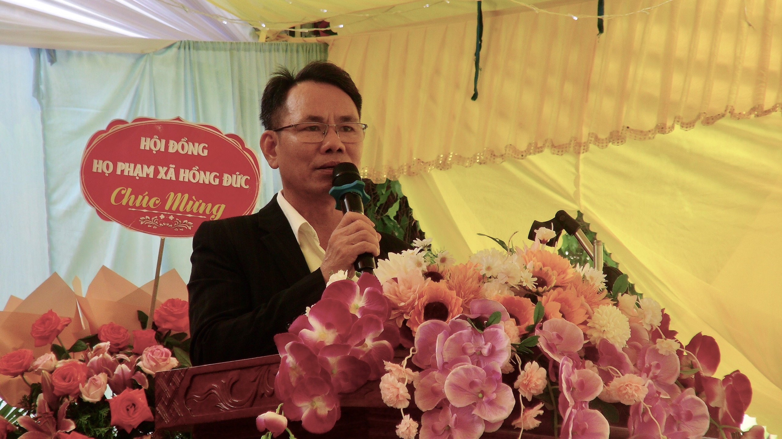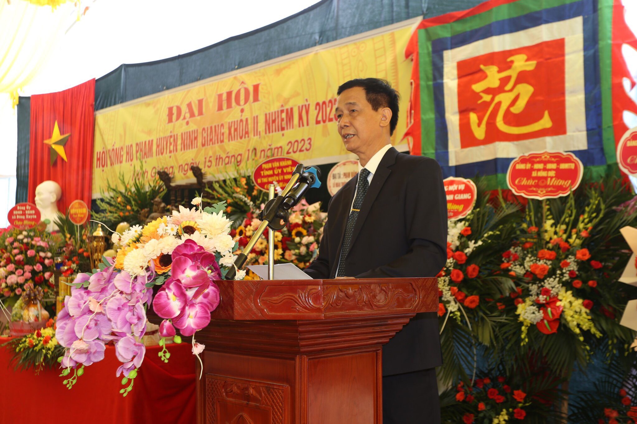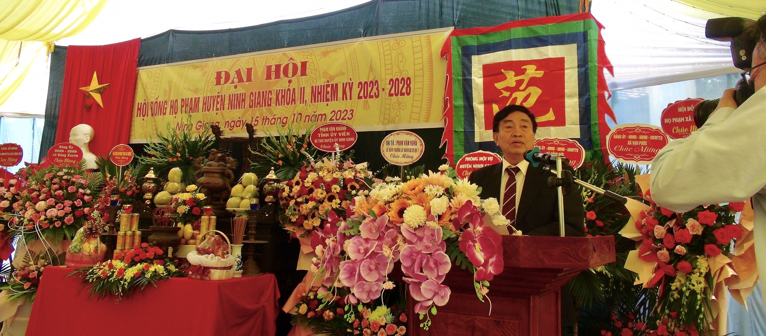 Phó chủ tịch Thường trực, kiêm TTK Hội đồng họ Phạm tỉnh Hải Dương, Phạm Văn Hoàn đã phát biểu ghi nhận và đánh giá cao kết quả hoạt động họ Phạm Ninh Giang, đồng thời rất vui mừng và đồng tình với chủ trương sẽ xây nhà thờ họ chung của HĐHP huyện Ninh Giang.
