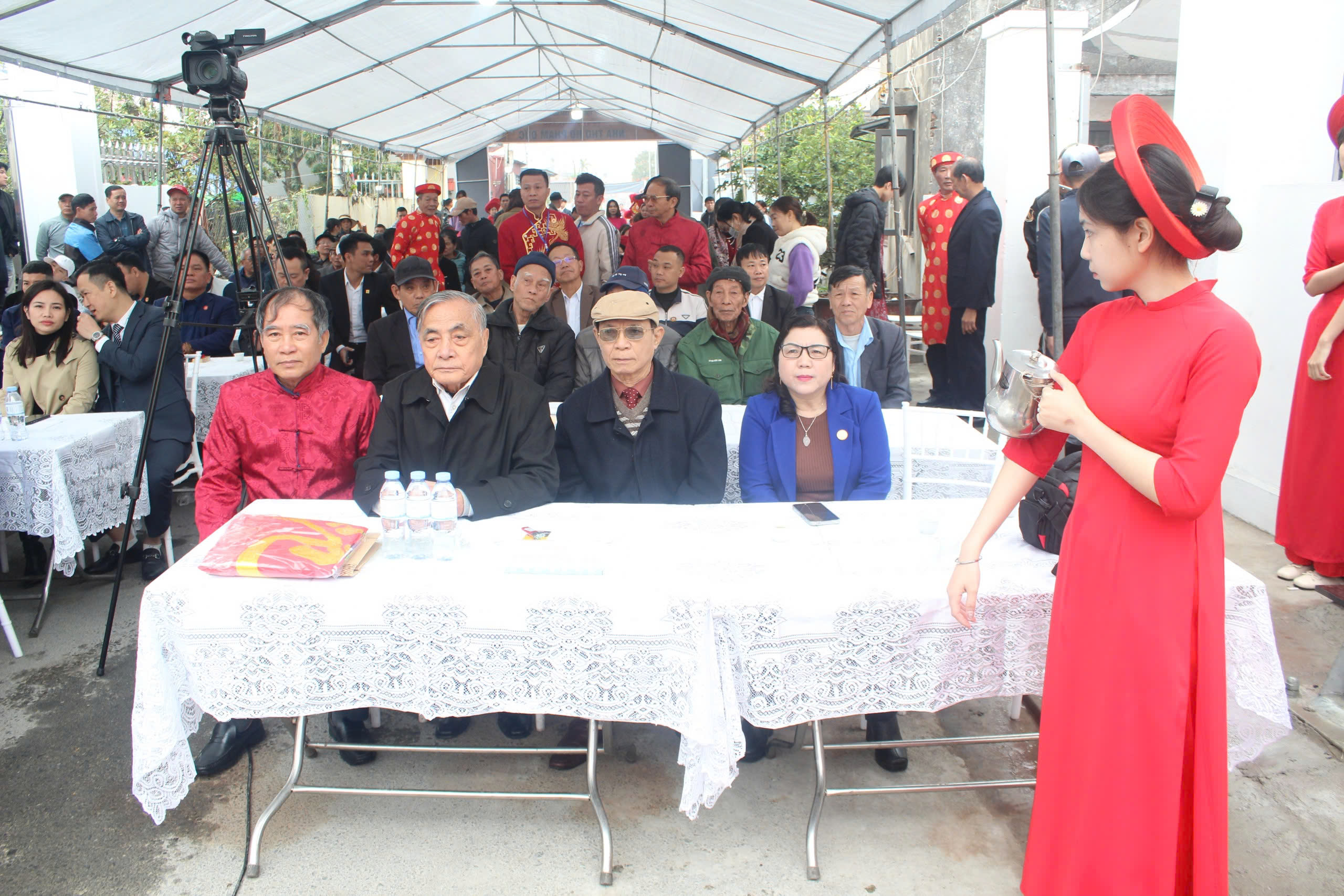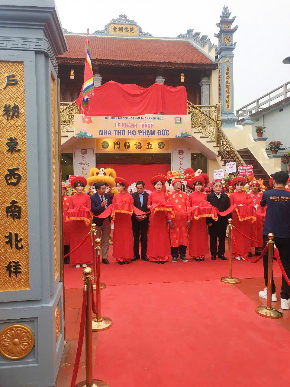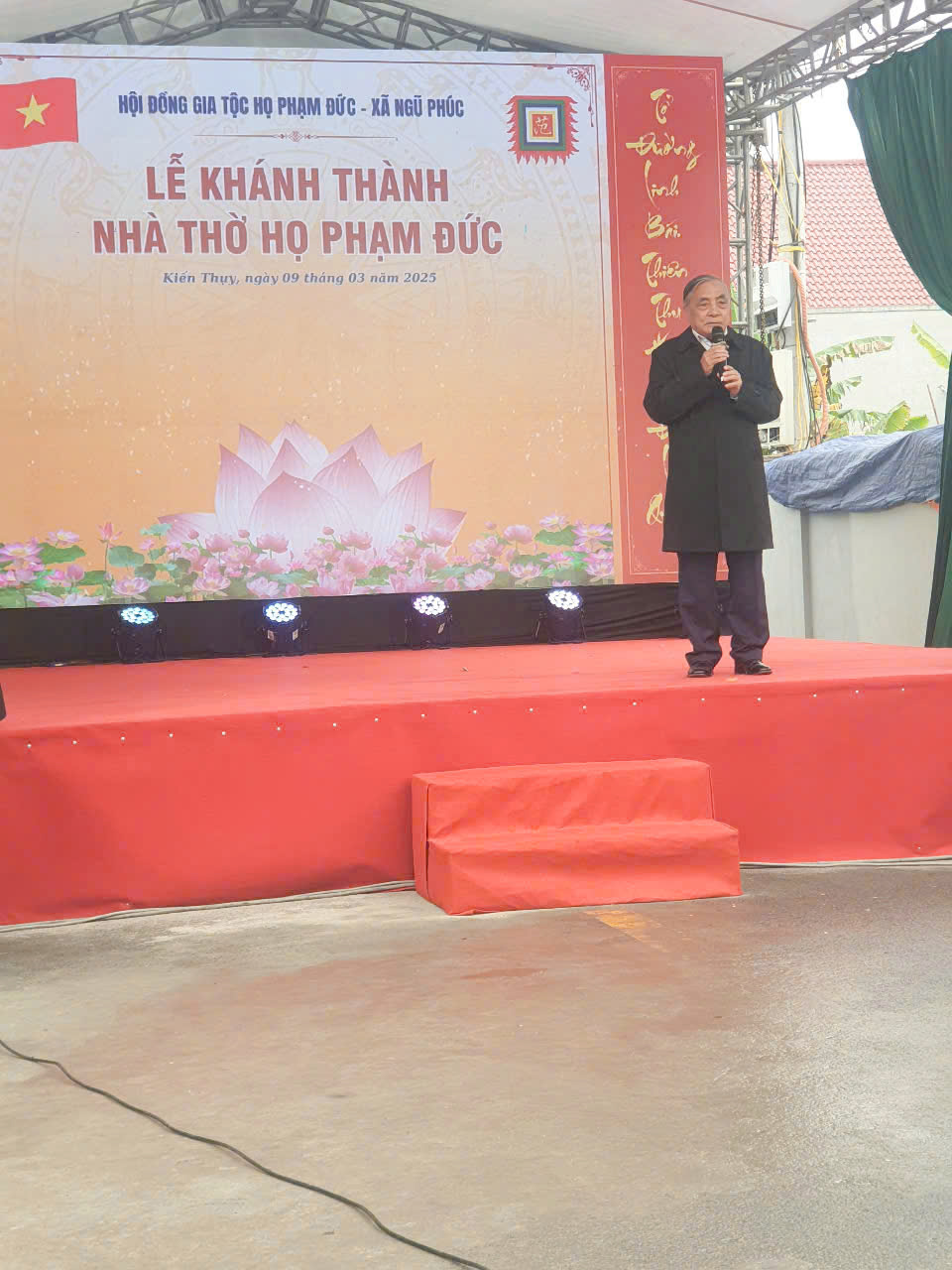 Sau tiếng trống khai lễ là báo cáo quá trình xây dựng nhà thờ và đọc Chúc Văn cắt băng khánh thành . Ông TS Phạm Tiến Dũng Nguyên Phó chủ Tịch UBND TP HP . PCT HĐHPVN – CT HĐHP HP cùng đoàn đã trao hoa chúc mừng, cờ họ Phạm Việt nam và cùng HĐGT làm lễ dâng hương tại từ đường gia tộc