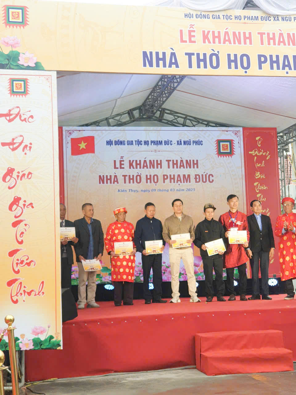 Nhận Lời Mời Của HĐGT Họ Phạm Đức Xã Ngũ Phúc, H Kiến Thụy TP Hải Phòng Sáng ngày 9/3/2025 Nhằm ngày 10 tháng 2 năm Ất Tỵ . Đoàn HỘI ĐỒNG HỌ PHẠM TP HẢI PHÒNG Do Ông TS Phạm Tiến Dũng Nguyên Phó chủ Tịch UBND TP HP . PCT HĐHPVN – CT HĐHP HP .Trưởng Đoàn . Ông Phạm Văn Mạnh UVHĐHPVN PCT Kiêm TTK HĐHPHP . Ông Phạm Văn Vình UVHĐHP VN – PCT HĐHPHP .Bà Phạm Phương Hiền UVHĐHPVN – PCT HĐHP HP Ông Phạm Văn Diệp UVTT HĐHPHP -CVP HĐ đã đến Từ Đường GT họ Phạm Đức . Xã Ngũ Phúc , Huyện Kiến Thụy HP . Đã đến dự lễ khánh thành nhà thờ họ Phạm Đức theo nghi lễ truyền thống .