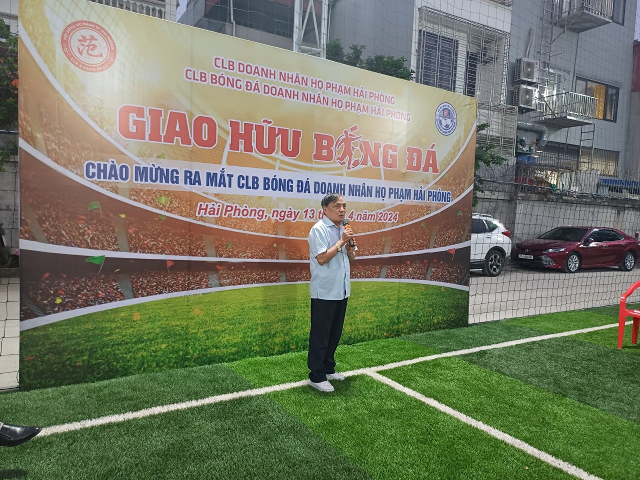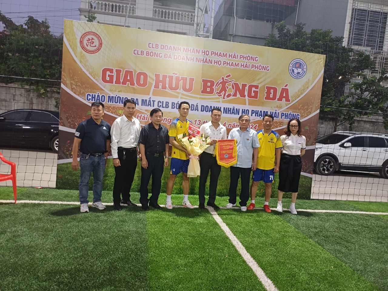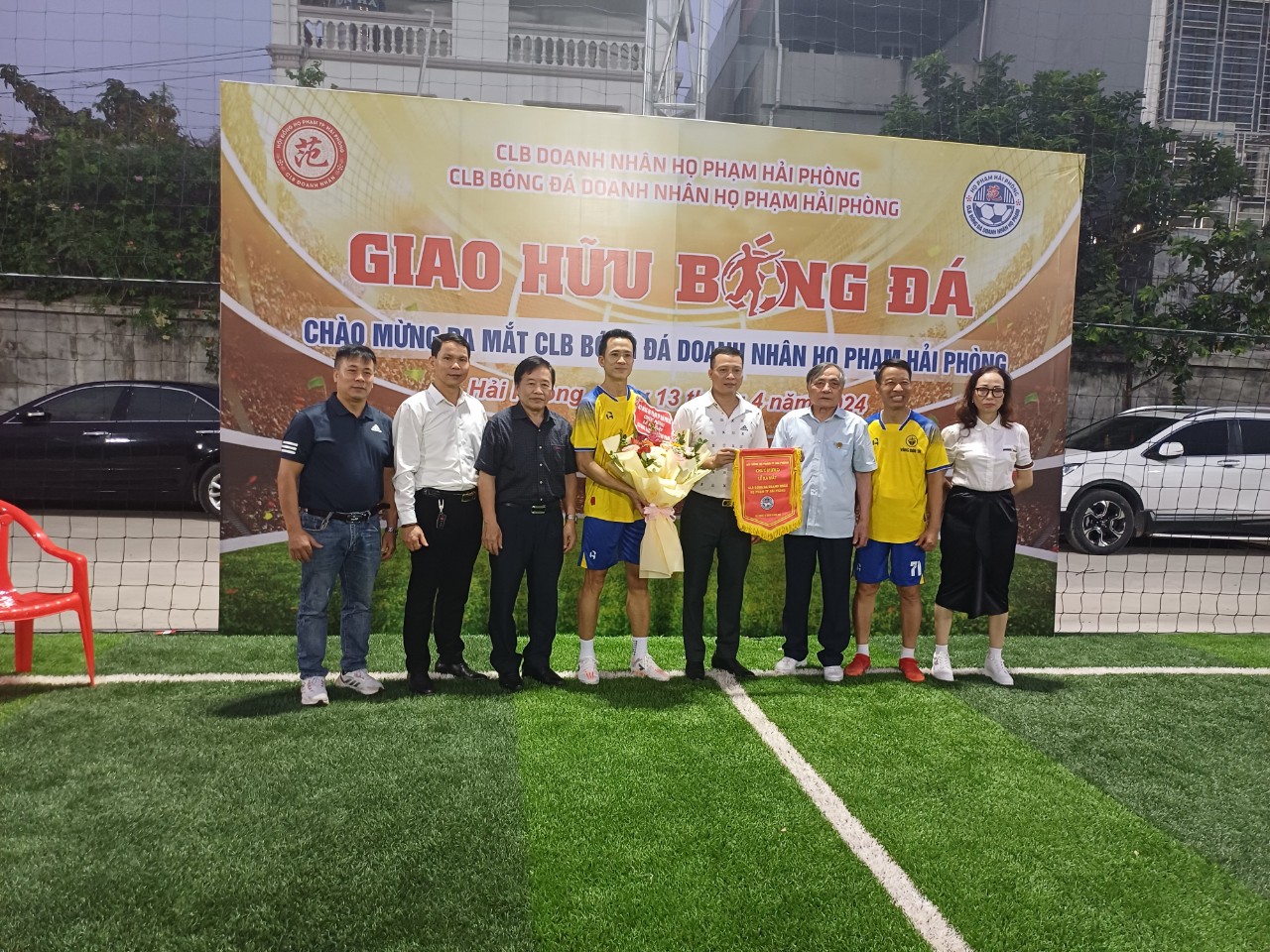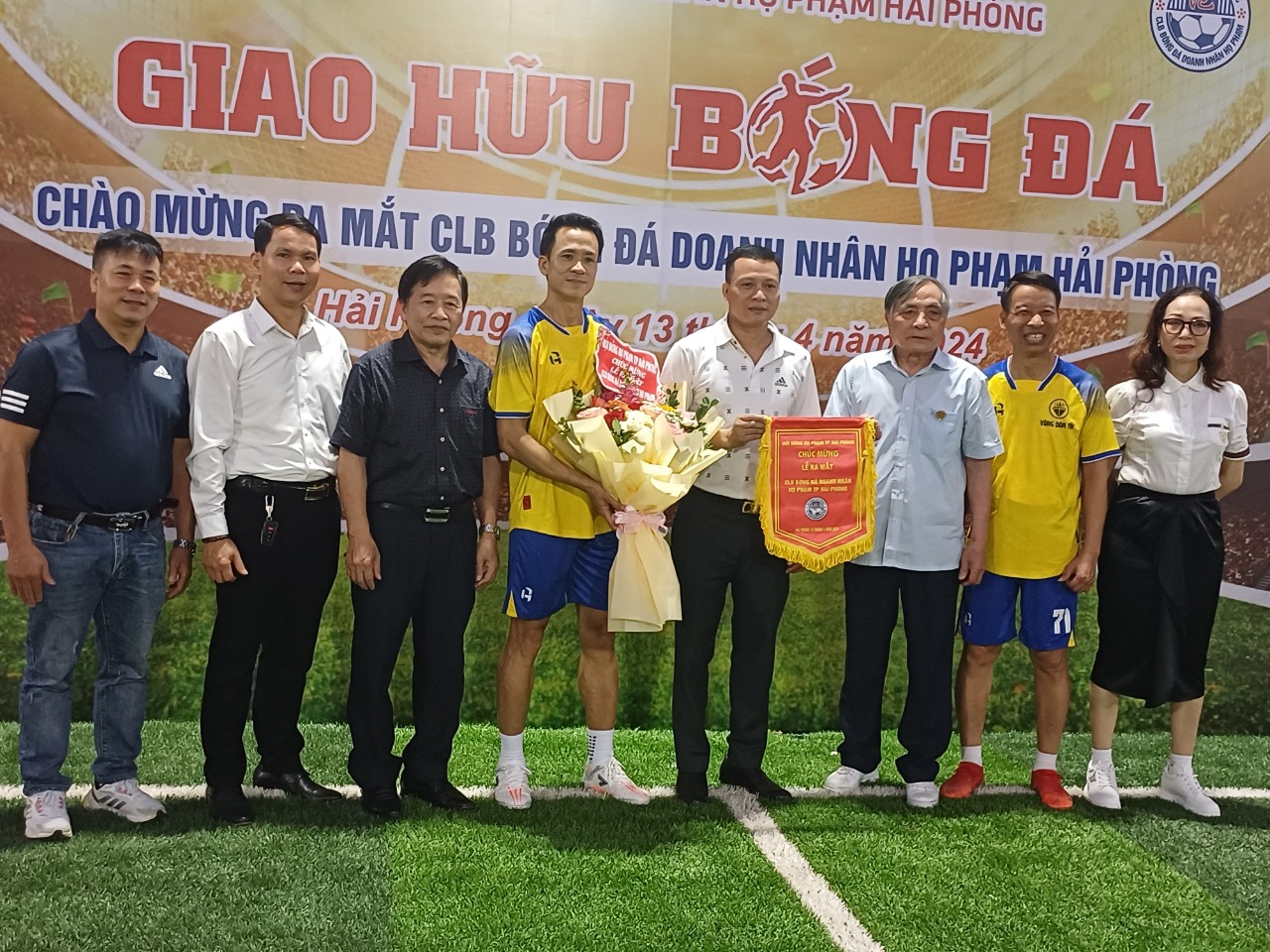 Mừng Kỷ niệm 1548 năm 12/3/476 (năm Bính Thìn) -12/3/2024 (năm Giáp Thìn) Ngày Đản Sinh Đô Hồ Đại Vương Thượng Thủy Tổ HỌ PHẠM Việt Nam; 49 năm ngày giải phóng miền Nam Thống nhất đất nước 30/4/1975 – 30/4/2024; Ngày Quốc Lao động 1/5 và 69 năm ngày giải phóng Hải Phòng 13/5/1955- 15/5/2024 và lễ hội Hoa Phượng đỏ Hải Phòng năm 2024, chiều ngày 13/4/2024, tại sân bóng 89 An Dương, TP Hải Phòng, CLB DOANH NHÂN HỌ PHẠM TP Hải Phòng tổ chức lễ ra mắt CLB BÓNG ĐÁ do Chủ Tịch Phạm Bùi Trung làm Chủ nhiệm và CLB đã thi đấu giao hữu 2 hiệp trong 50′, mỗi hiệp 25’phút (mỗi bên có 7 cầu thủ); trọng tài trận đấu là nữ tướng trẻ trung, nhiệt tình hăng hái. Kết quả tỉ số 8/7 nghiêng về đội Vàng Tín.