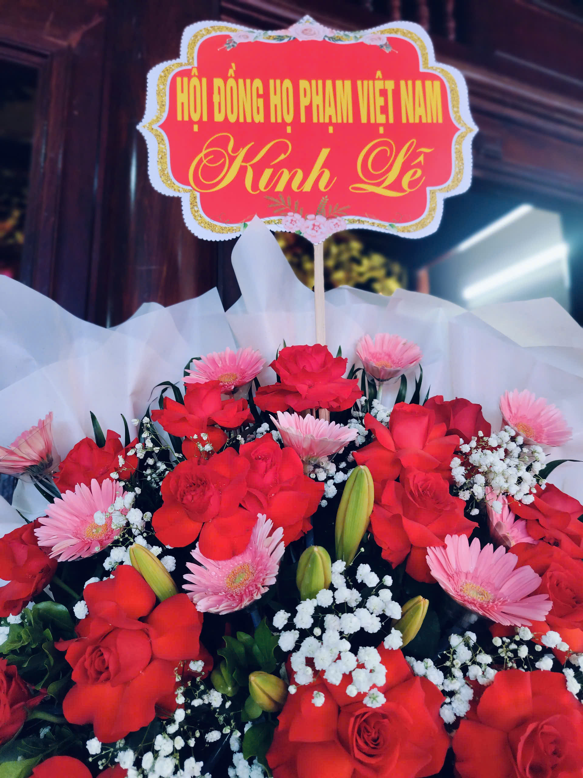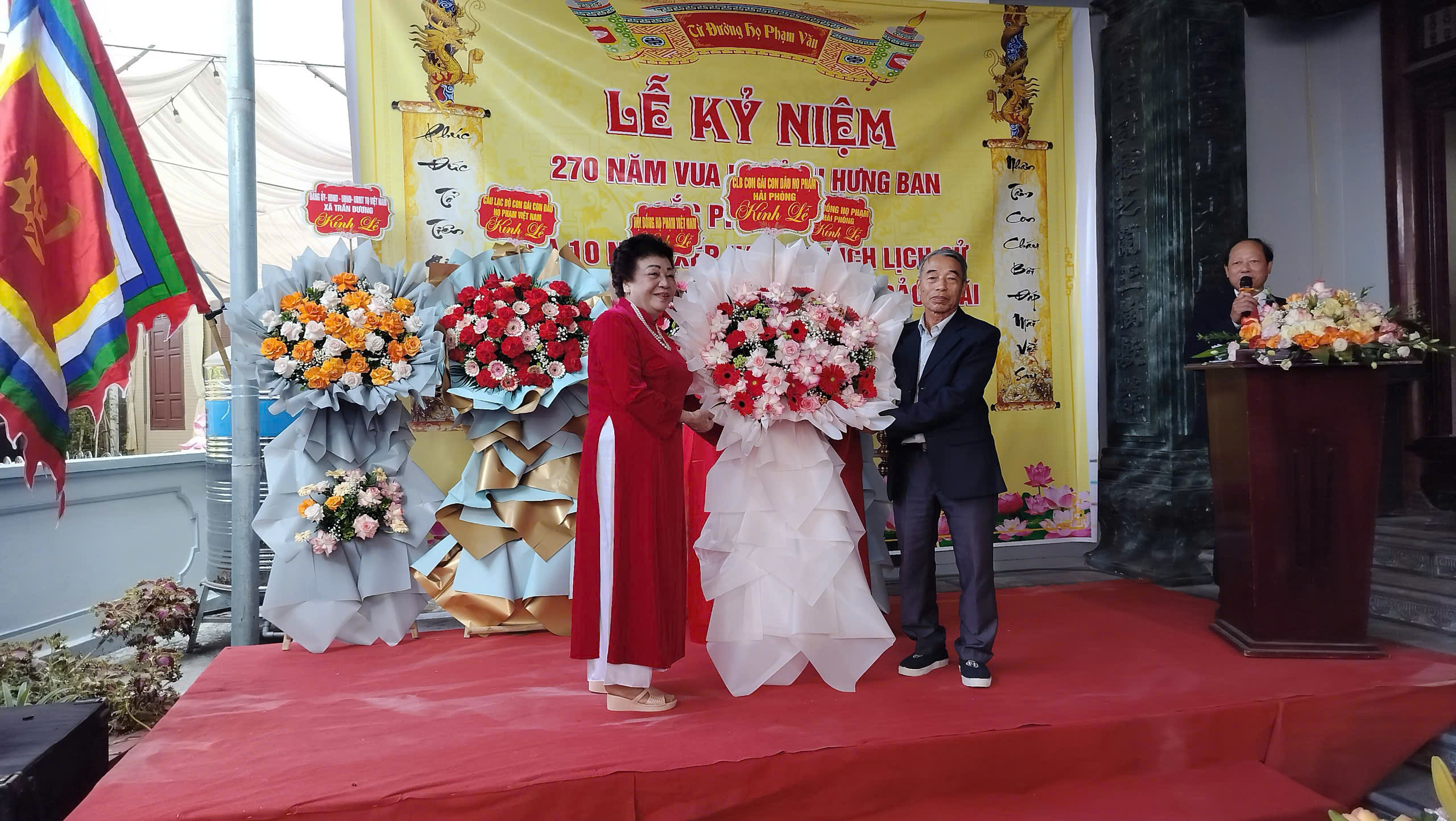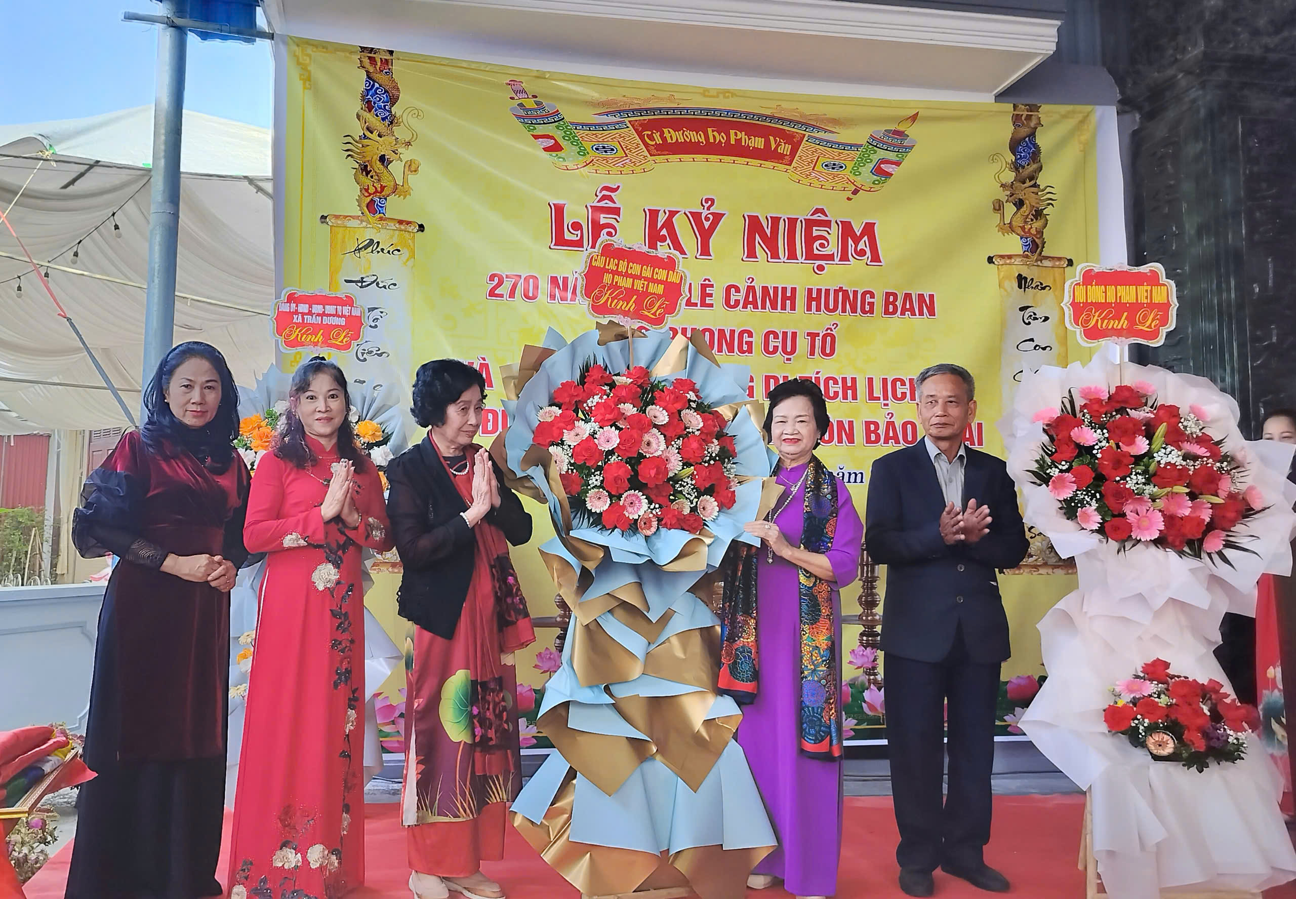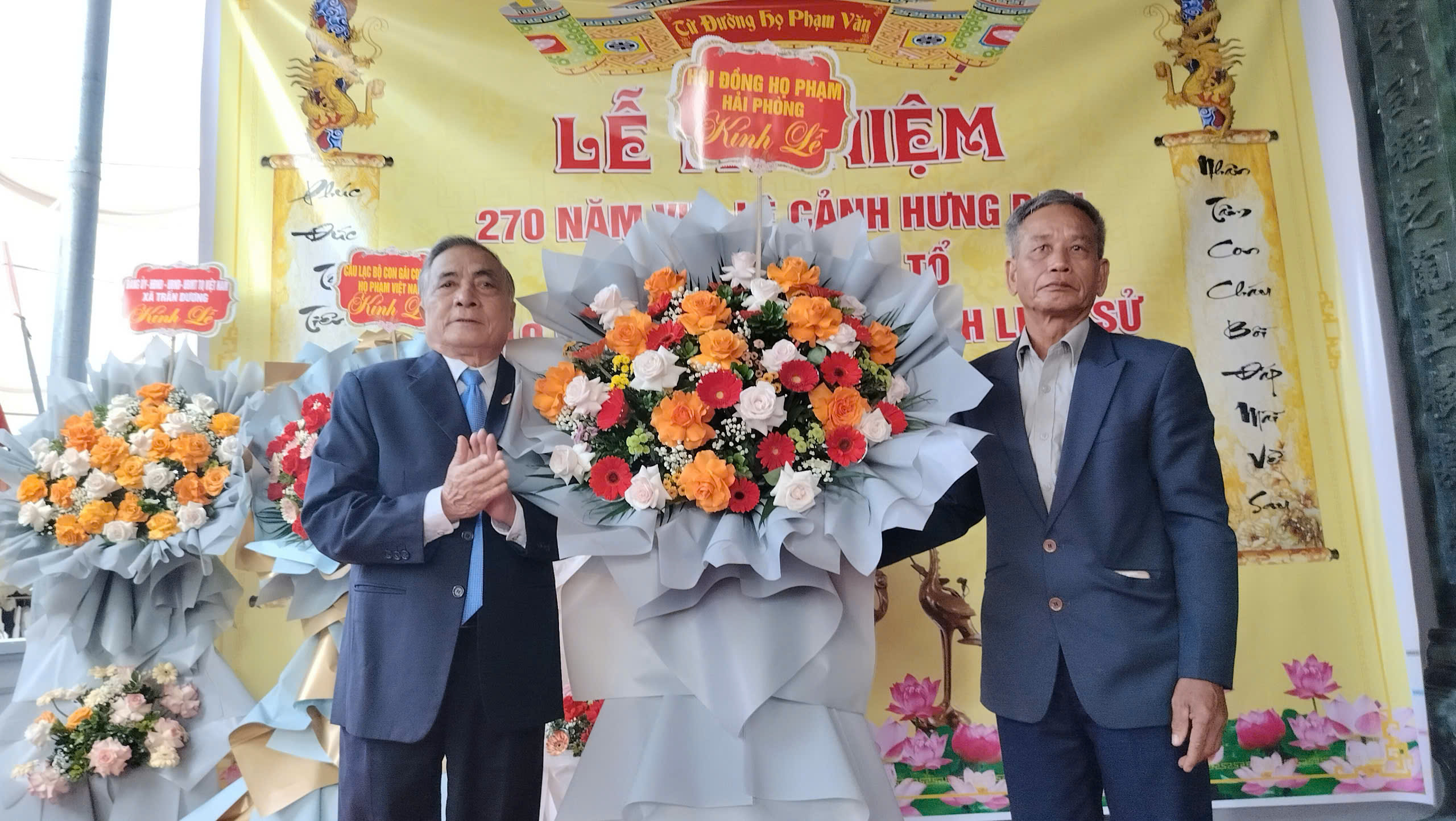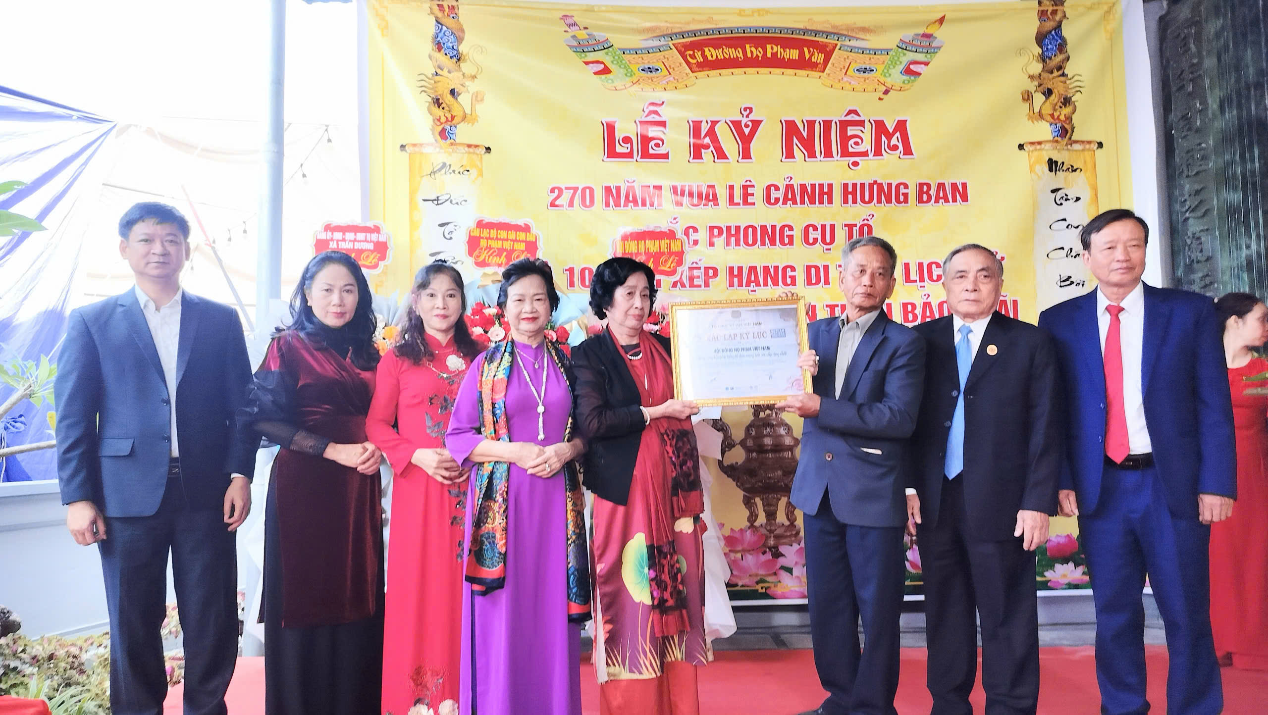 Trong dịp này, bà Phạm Thị Lệ Trường đã trao tặng Cờ họ Phạm Việt Nam và bằng chứng nhận kỷ lục Guinness Việt Nam cho HĐGT Phạm Văn.