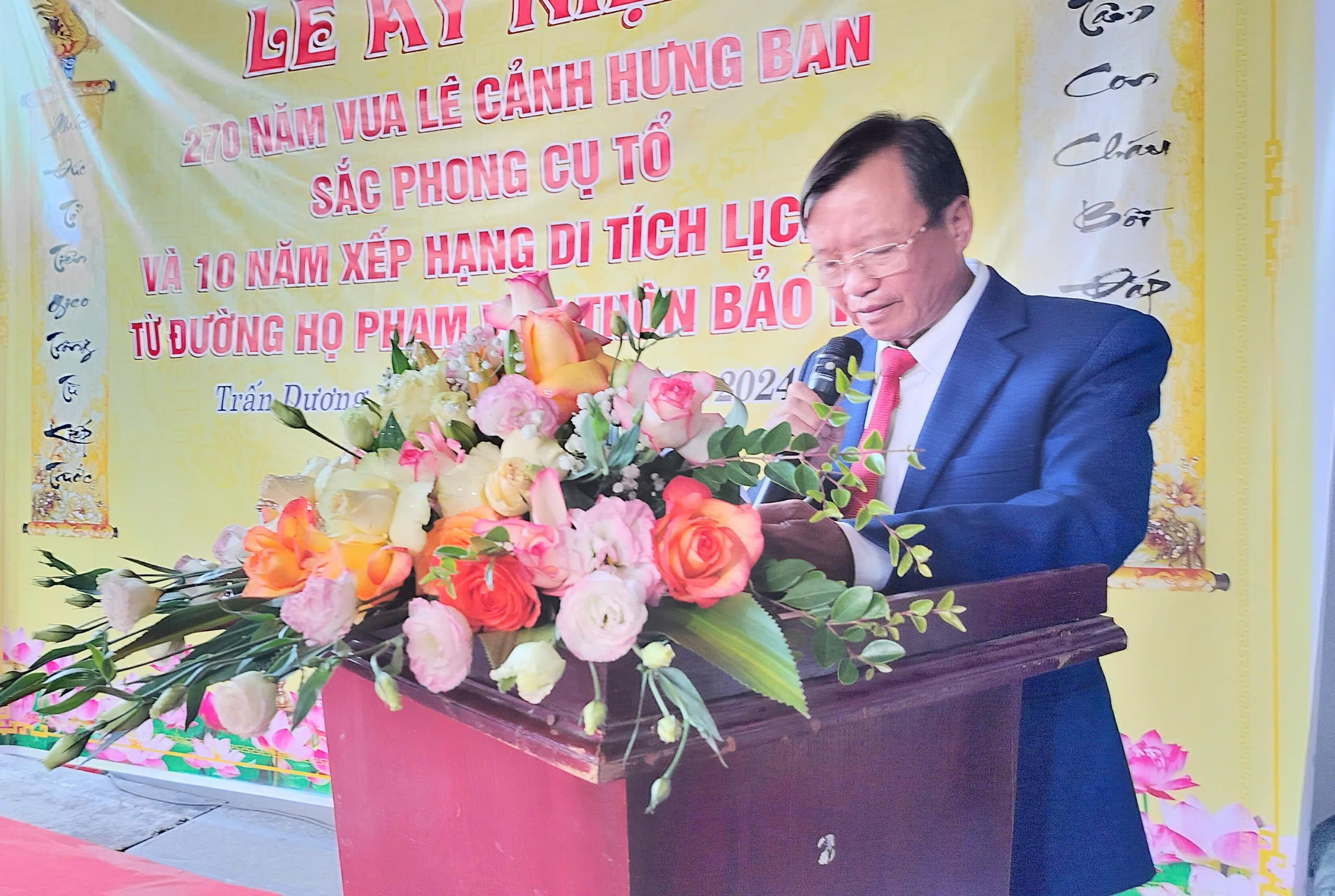 Sáng ngày 1/12/năm 2024, HĐGT và bà con dòng họ Phạm Văn, thôn Bảo Ngãi, xã Trấn Dương, huyện Vĩnh Bảo, Hải Phòng, đã long trọng tổ chức lễ kỷ niệm 270 năm vua Lê Cảnh Hưng ban sắc phong cụ tổ và 10 năm xếp hạng di tích lịch sử từ đường họ Phạm Văn.