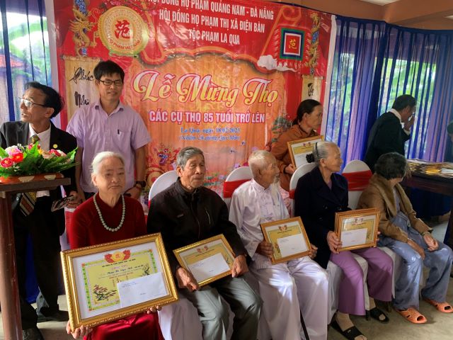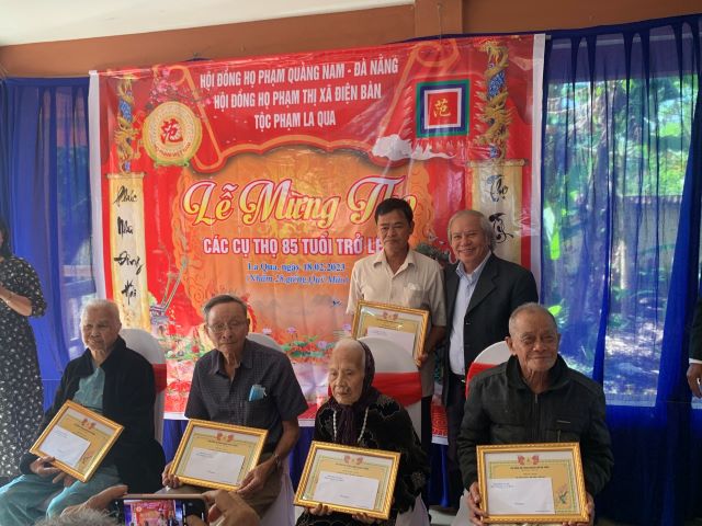 Sáng18/2/2023 , Tộc Phạm Làng La Qua, Vĩnh Điện, đã long trọng tổ chức mừng Thọ 94 cụ ông, cụ bà là gái, dâu, rể trong tộc.