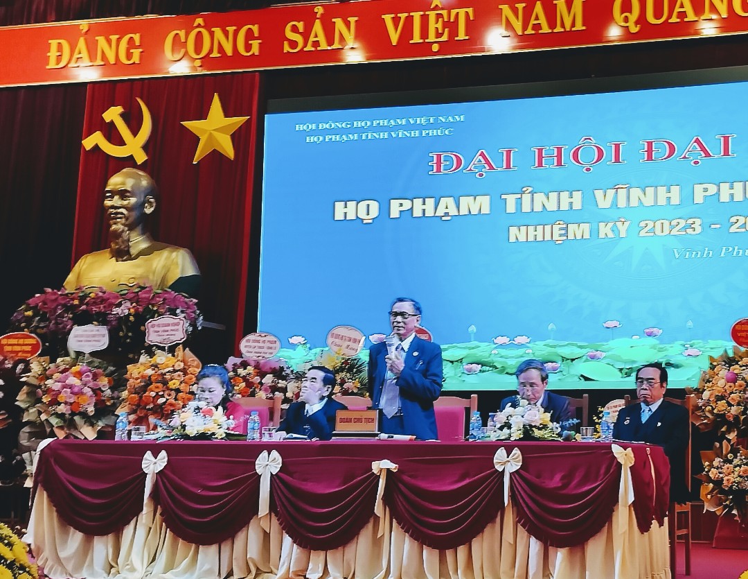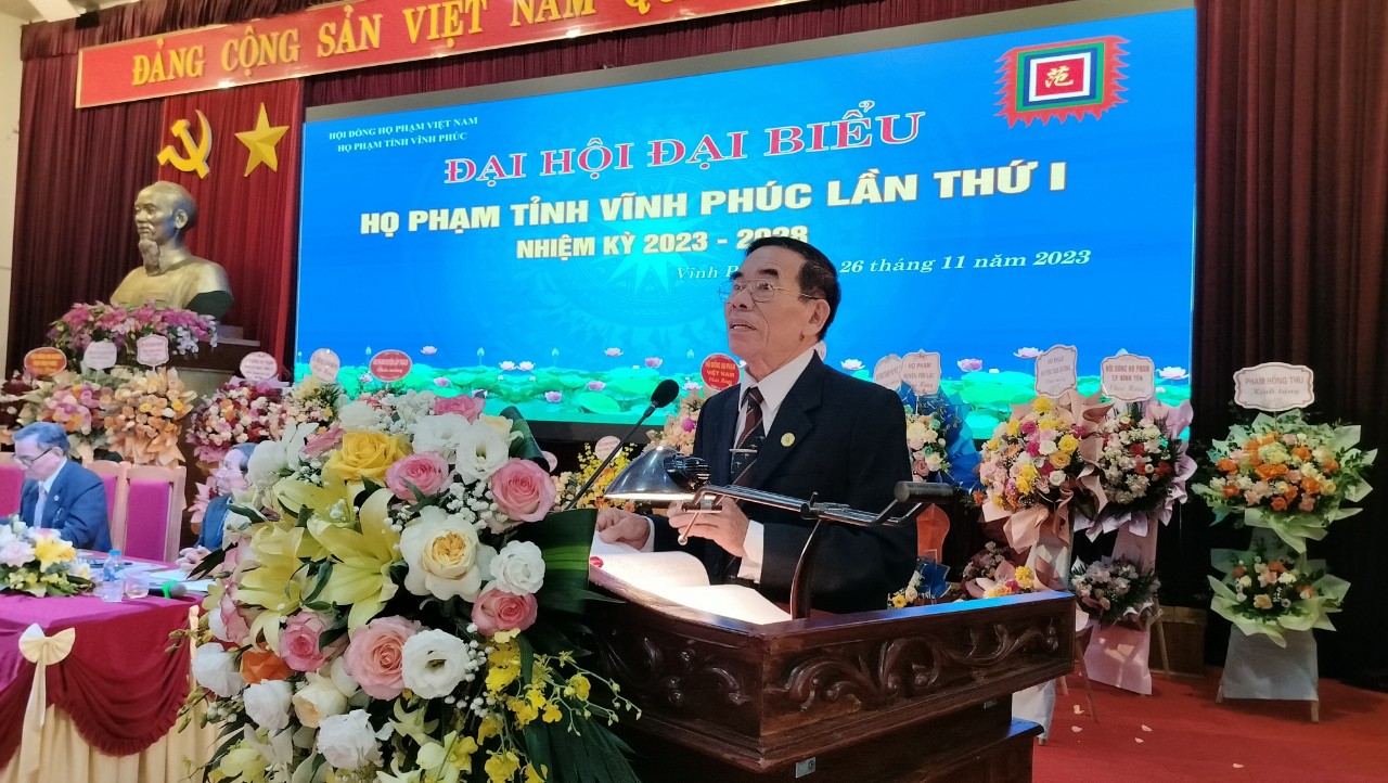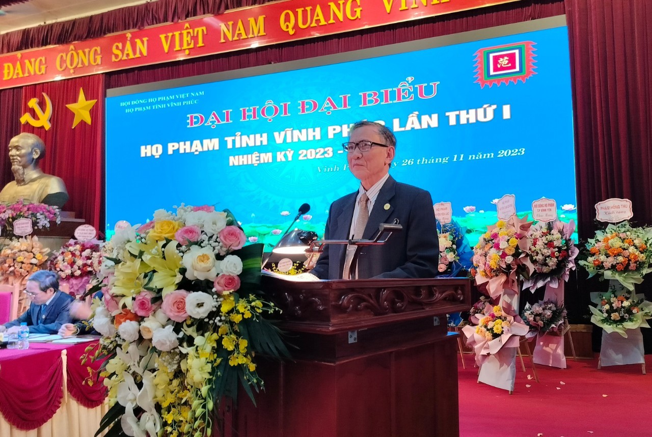 Chủ tịch Hội đồng họ Phạm Việt Nam, TS Phạm Vũ Câu, đã nhiệt liệt chúc mừng thành công của Đại hội, đồng thời ghi nhận và đánh giá cao kết quả hoạt động của Ban lâm thời tỉnh Vĩnh Phúc; mong muốn Hội đồng họ Phạm tỉnh Vĩnh Phúc sẽ tăng cường đoàn kết, tiếp tục củng cố và phát triển về tổ chức, nhằm thực hiện thắng lợi các nhiệm vụ đề ra tại đại hội; tặng cờ họ, và trao bằng kỷ lục Guinness cho Ban quản lý đền thờ Tráng Nguyên Phạm Công Bình huyện Yên Lạc.