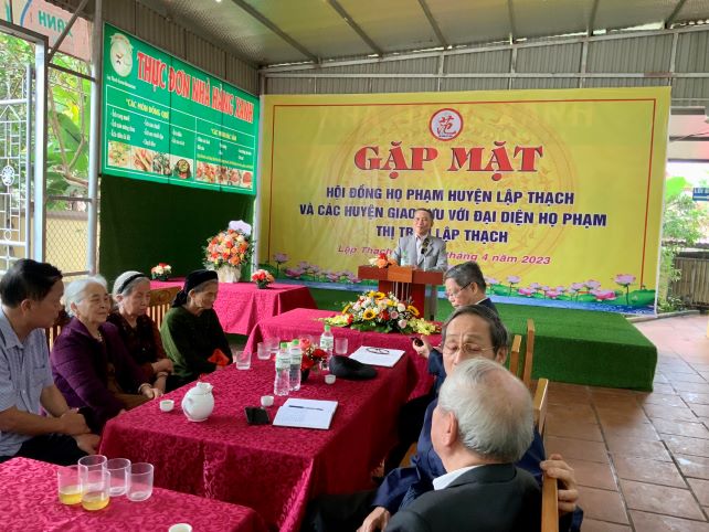 Sáng ngày 2/4/2023, tại thị trấn Lập Thạch, huyện Lập Thạch, tỉnh Vĩnh phúc, tổ chức họ, gặp mặt và giao lưu giữa HĐHP huyện Lập Thạch với các huyện bạn, đồng thời ra mắt Ban lâm thời H ĐHP thị trấn Lập Thạch./. PHẠM HẢI