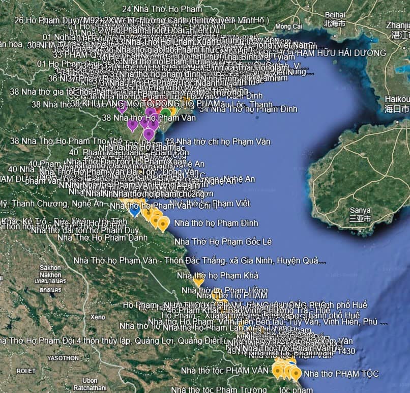6. Bản Đồ Định vị : Các nhà thờ Họ Phạm trên toàn quốc